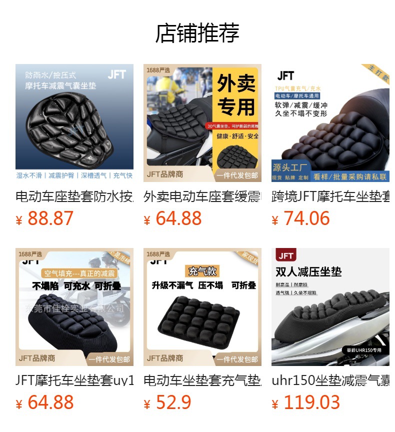JFT 오토바이 쿠션 커버 전기 쿠션 충격 흡수 풍선 오토바이 단열 매트 배터리 자동차 액세서리 등 쿠션스토어 가기