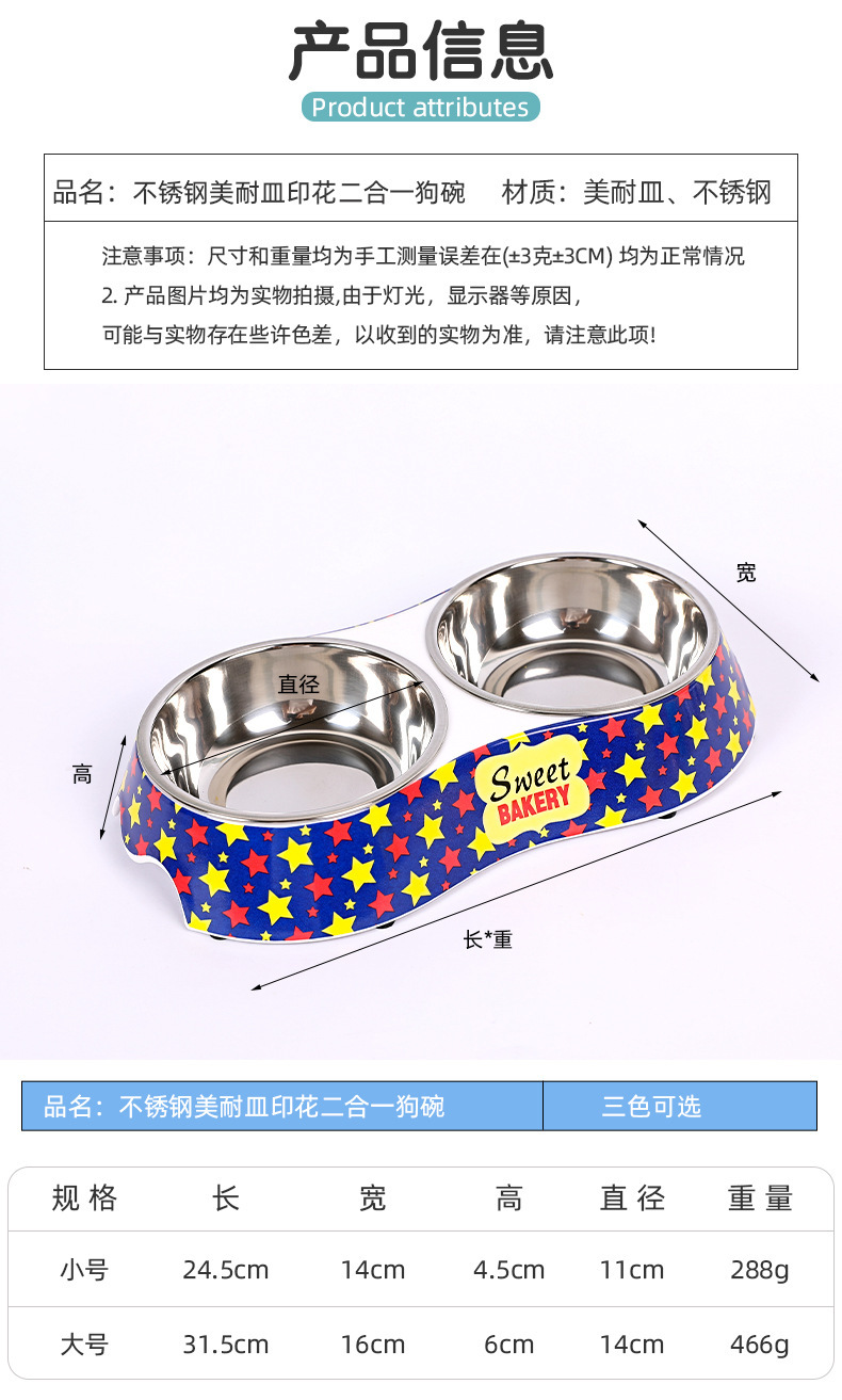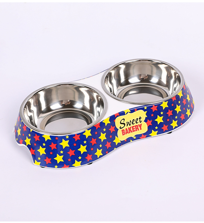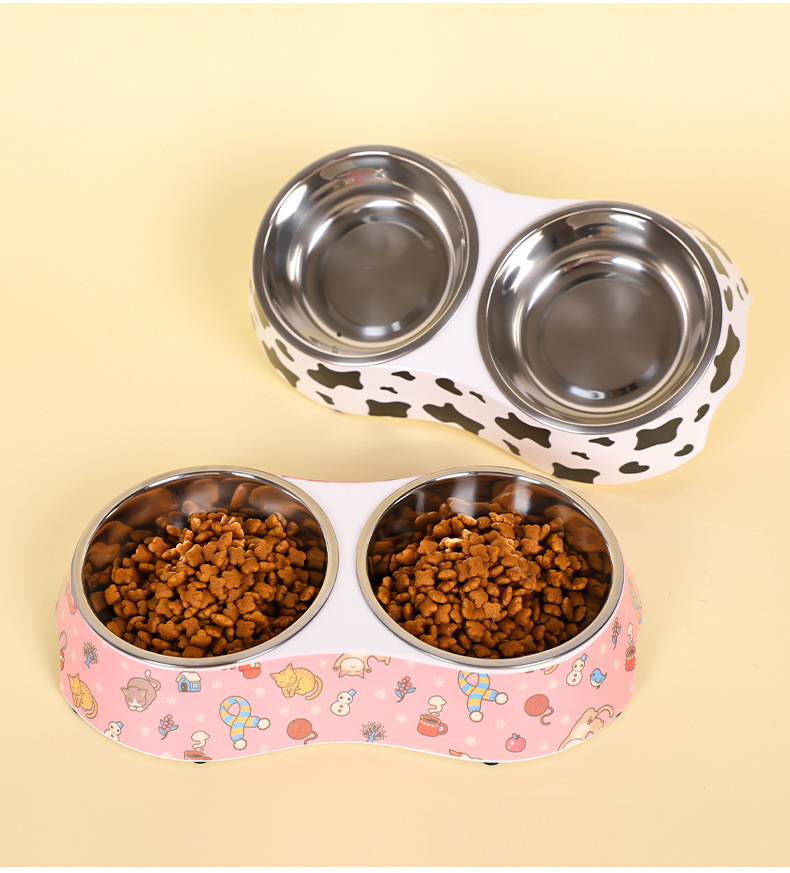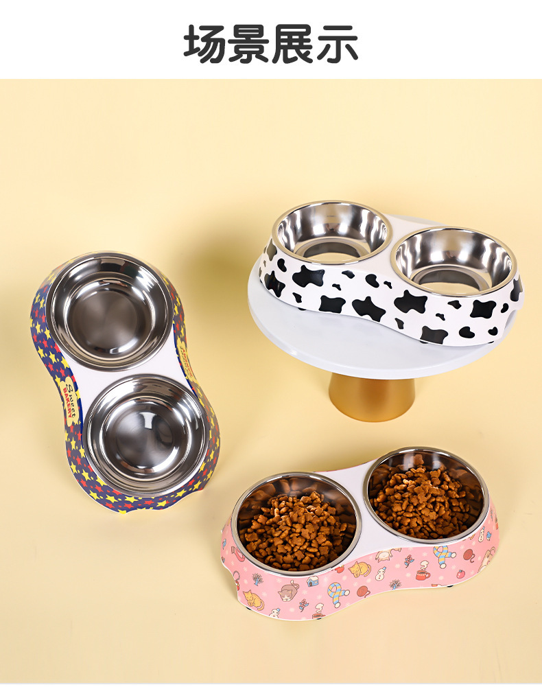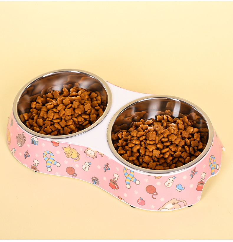 애완동물용 스테인리스 이중 그릇 미끄럼 방지 목 보호 고양이 그릇 멜라민 그릇 세척 용이 강아지 사료 그릇 대용량 급식 그릇