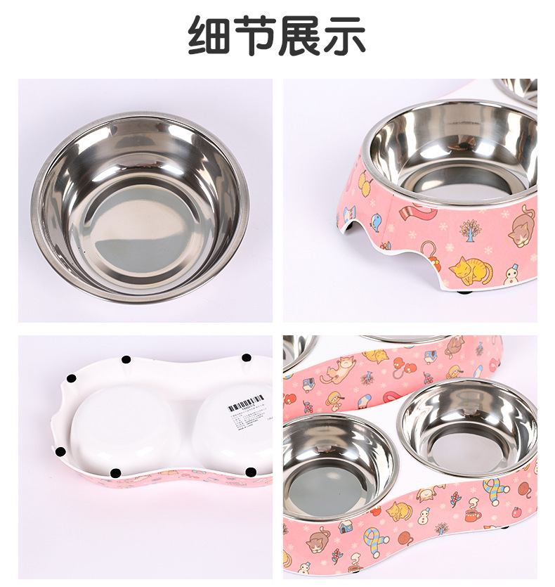 애완동물용 스테인리스 이중 그릇 미끄럼 방지 목 보호 고양이 그릇 멜라민 그릇 세척 용이 강아지 사료 그릇 대용량 급식 그릇스토어 가기