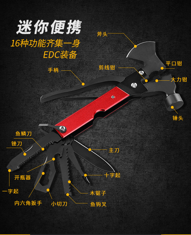 다기능 도끼 망치 휴대용 스테인리스 야외 캠핑 도구 차량용 생존 망치 방폭 도매스토어 가기