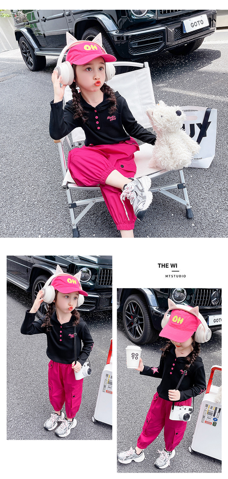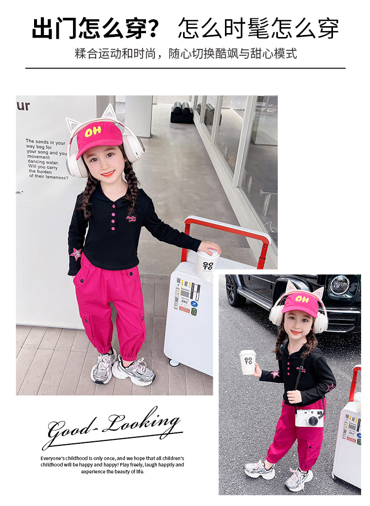 여아 작업복 세트 봄 가을 2024 신상 유행 아동복 인기 스포츠 투피스 세트 유아동용스토어 가기
