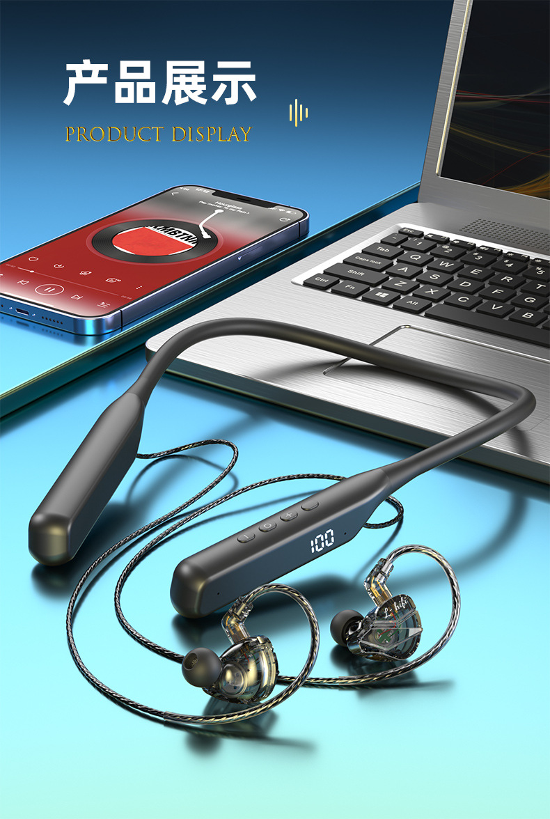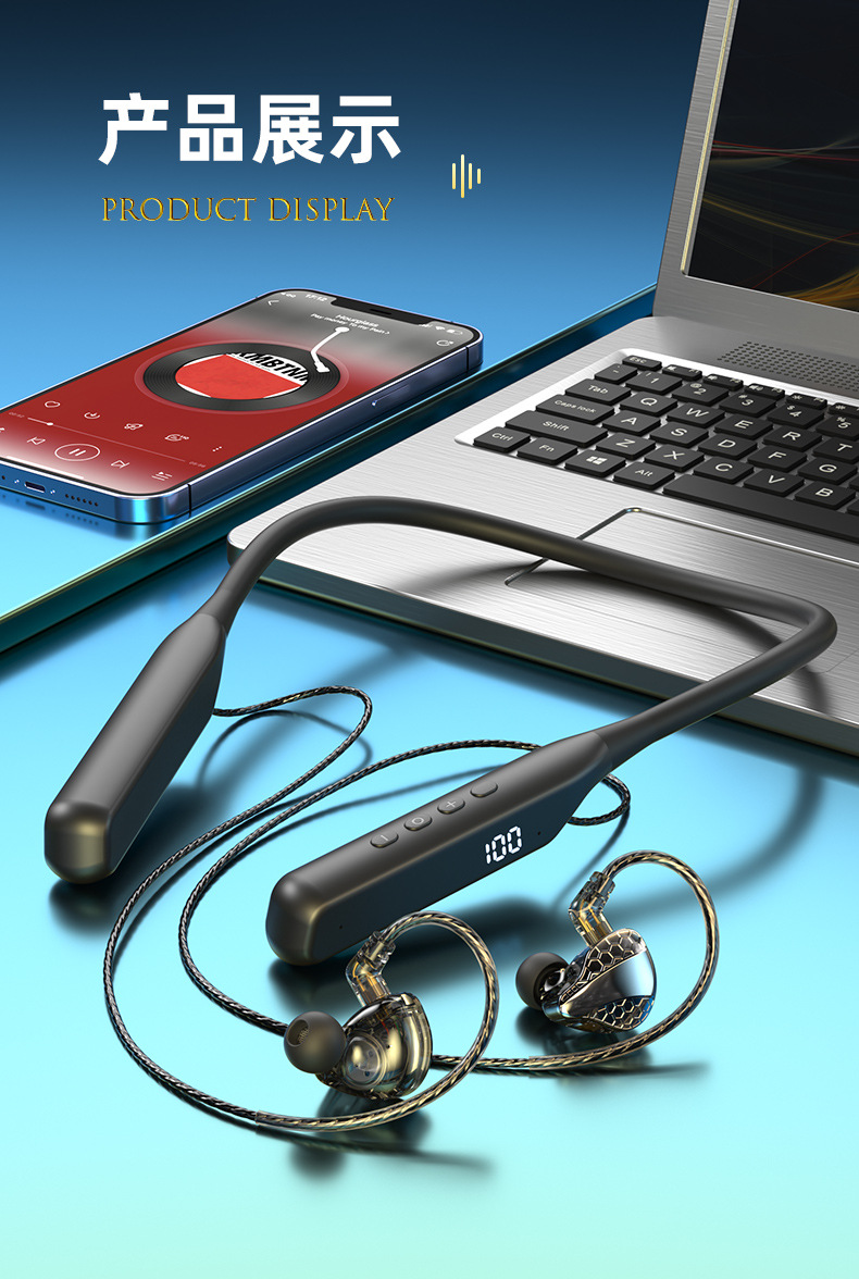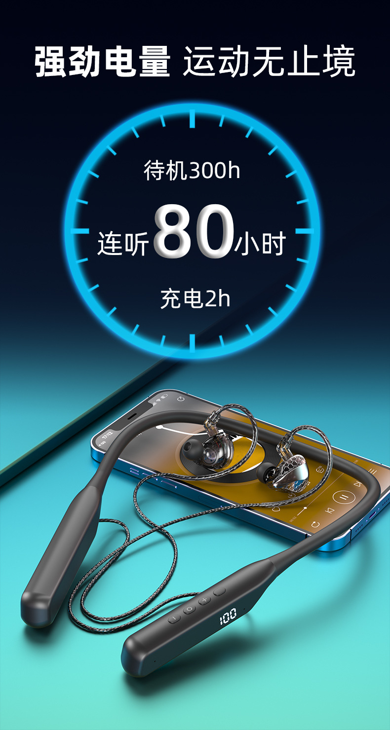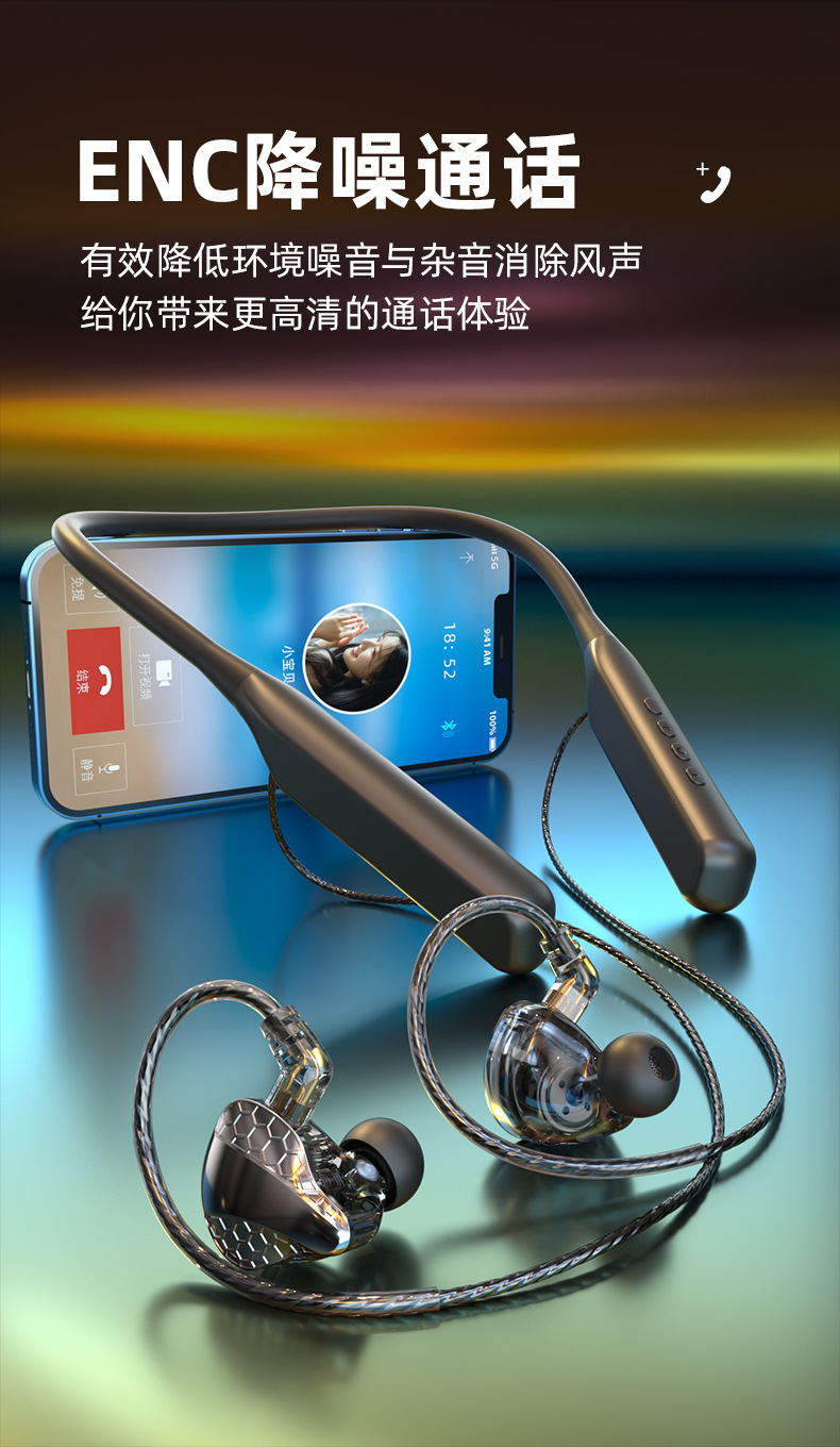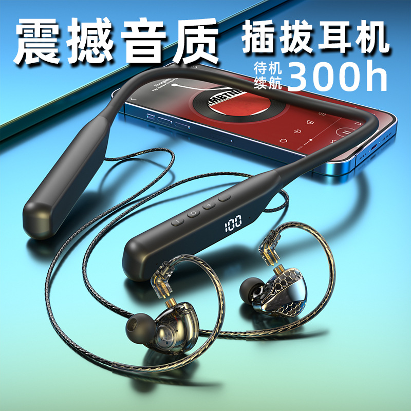 폭발적인 새로운 교수형 목 플러그 블루투스 헤드셋 초장거리 대기 소음 감소 통화