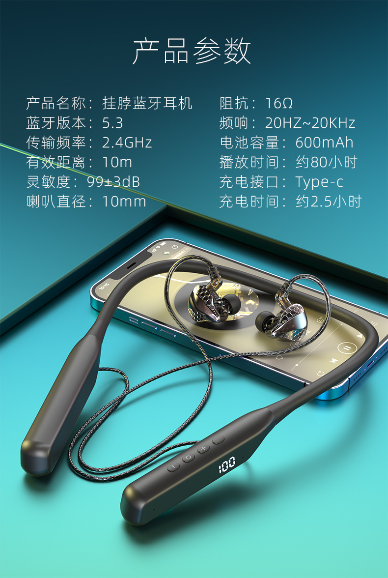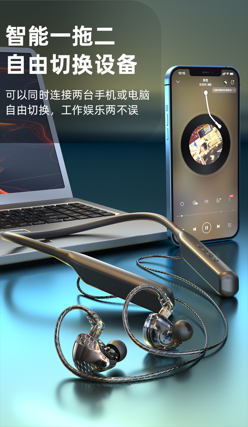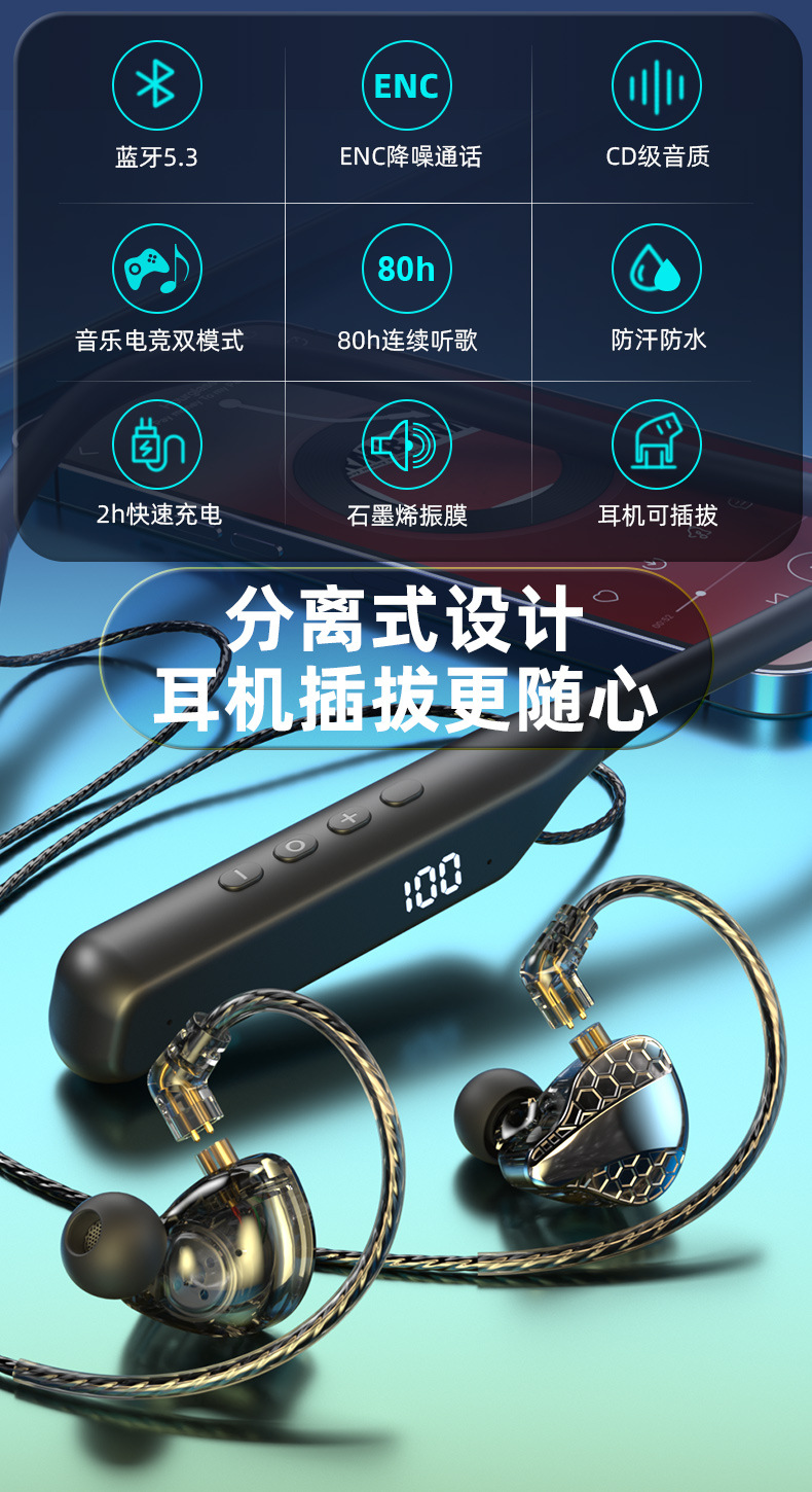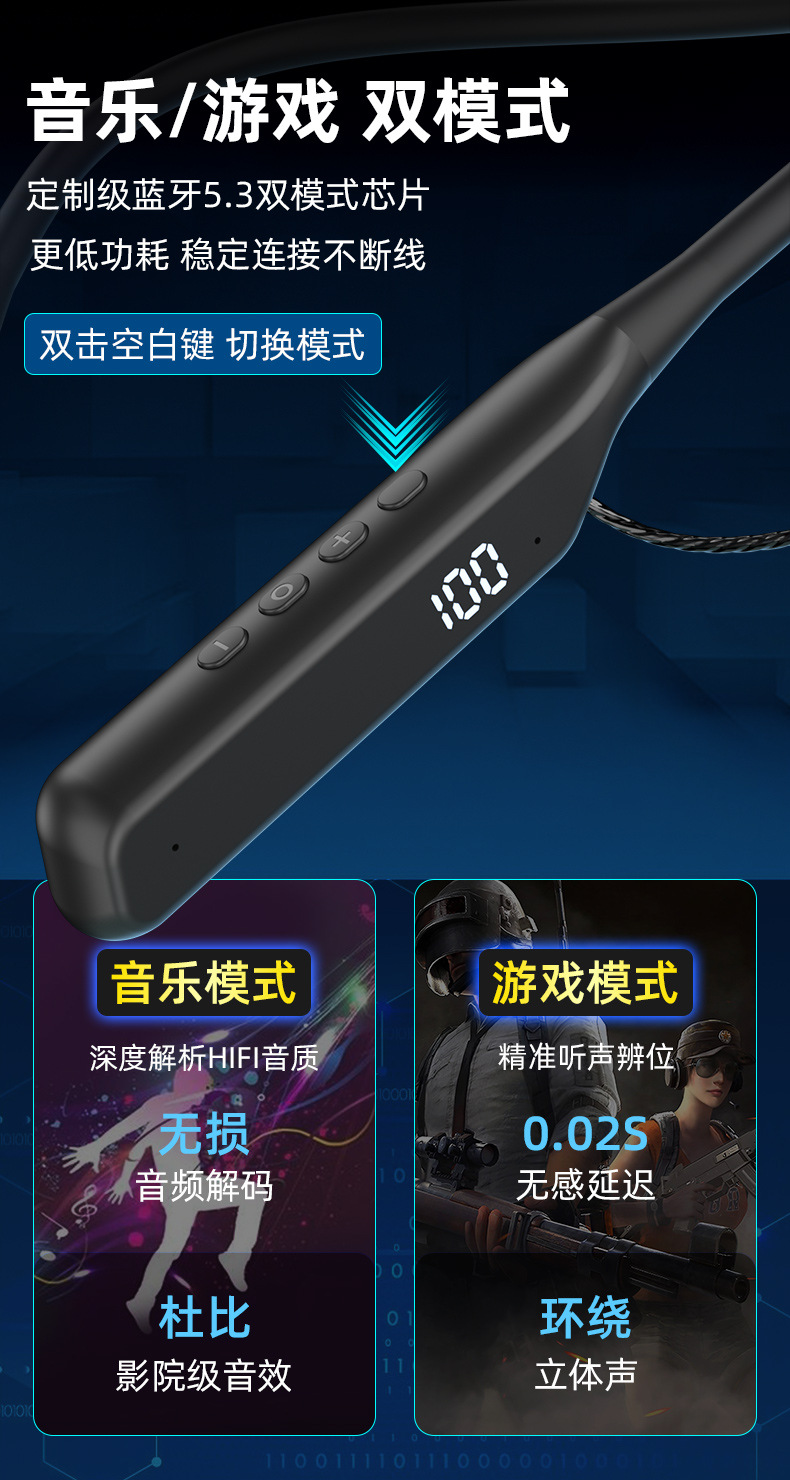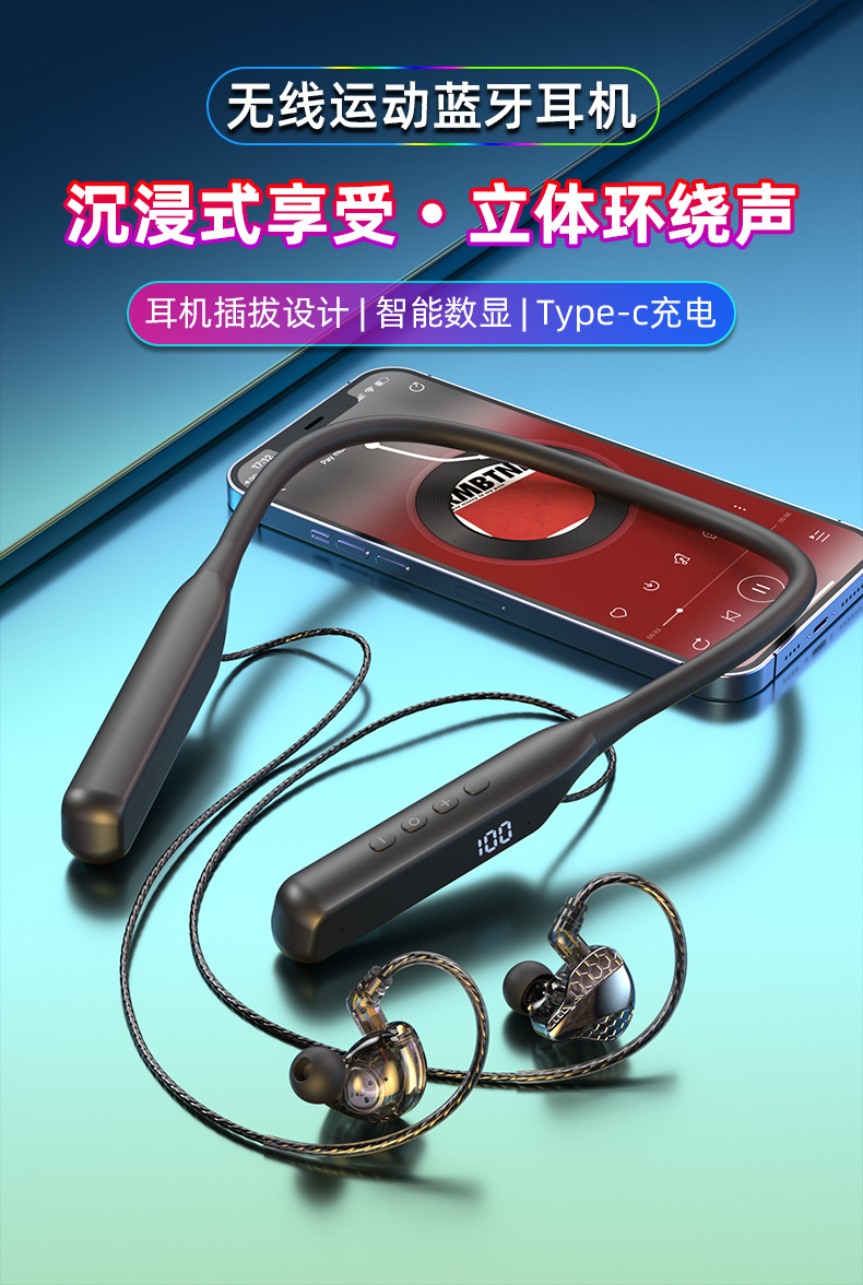 폭발적인 새로운 교수형 목 플러그 블루투스 헤드셋 초장거리 대기 소음 감소 통화
