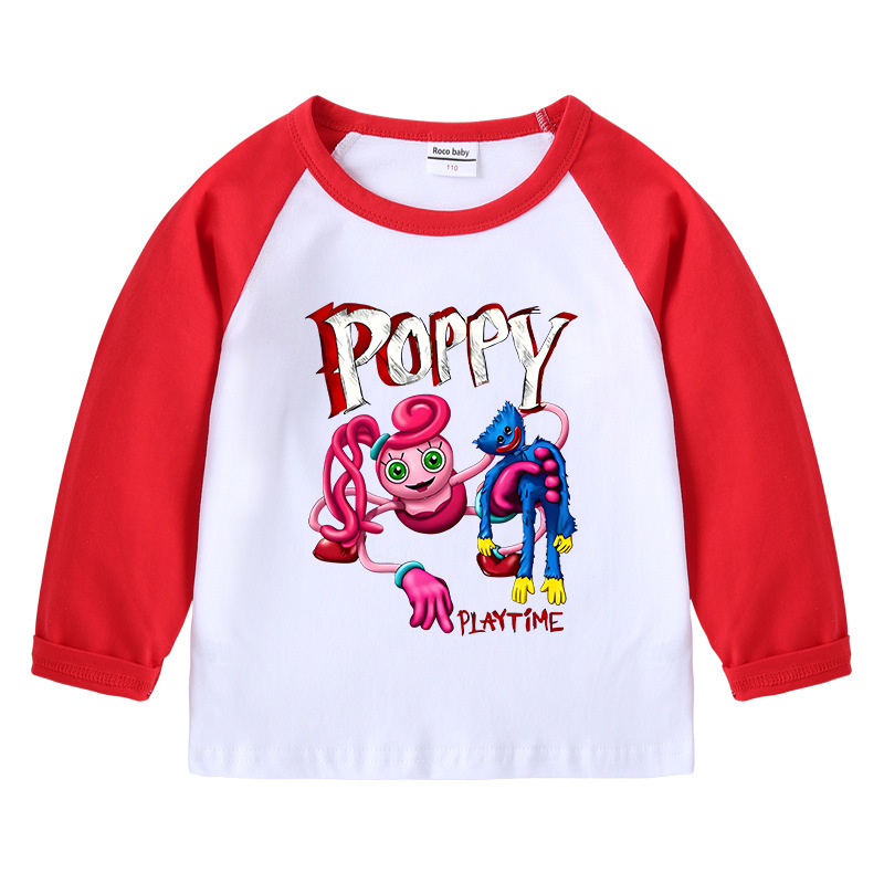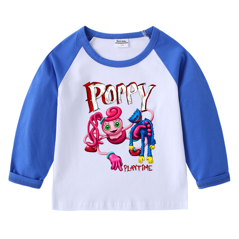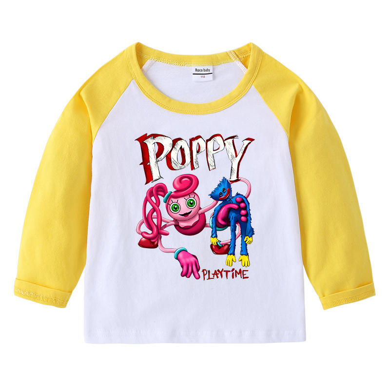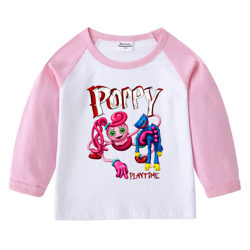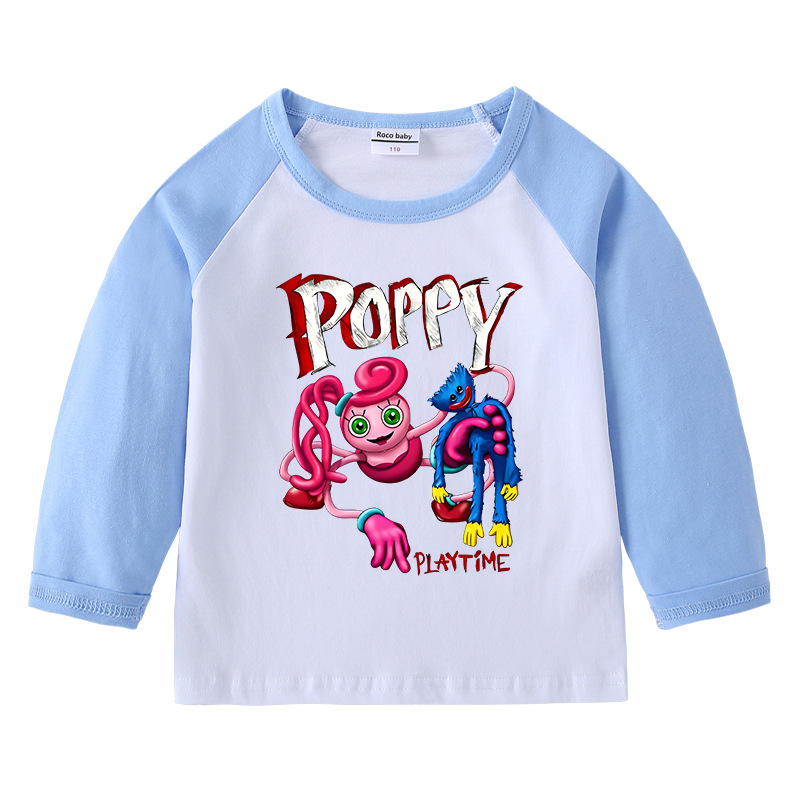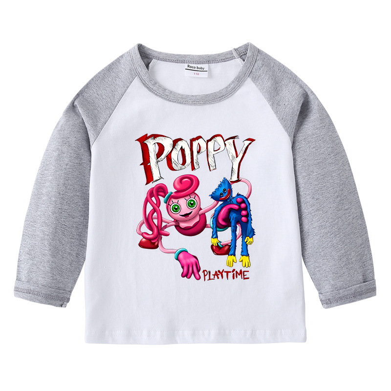 2023 크로스 보더 새로운 봄과 가을 어린이 티셔츠 라운드 넥 만화 긴 소매 탑베이스 셔츠 소년과 소녀 아기 면 티셔츠스토어 가기