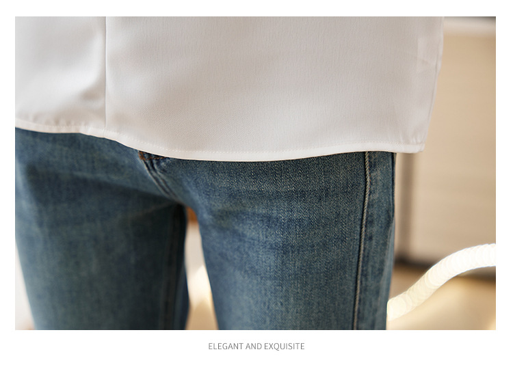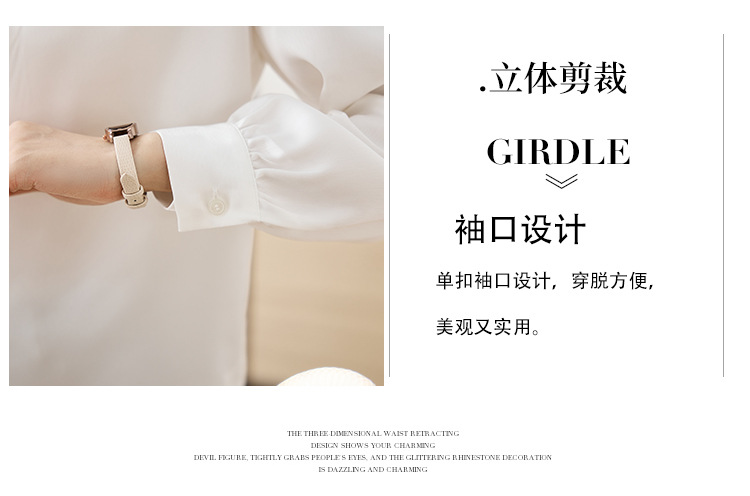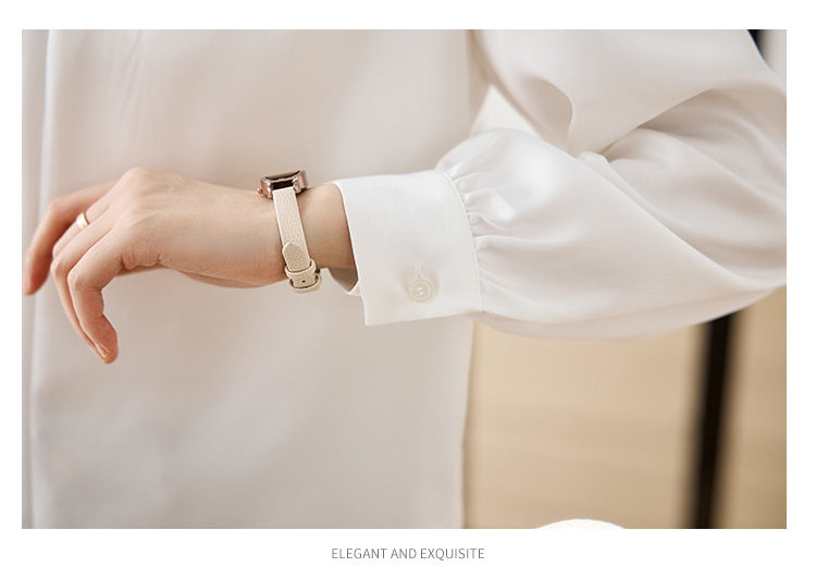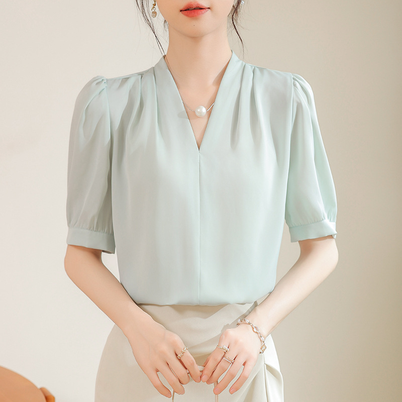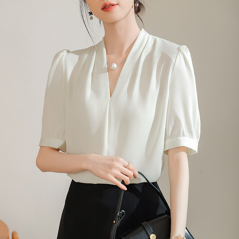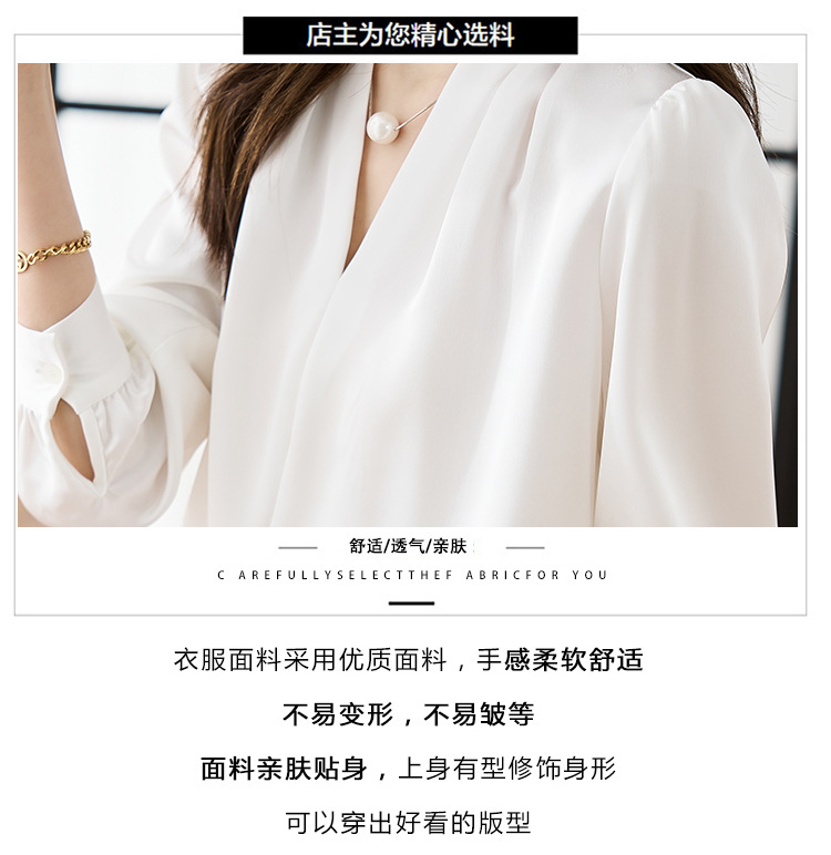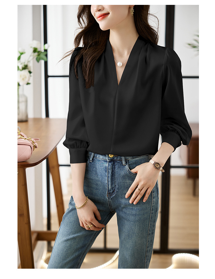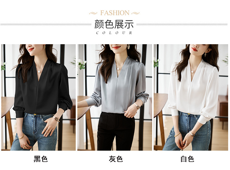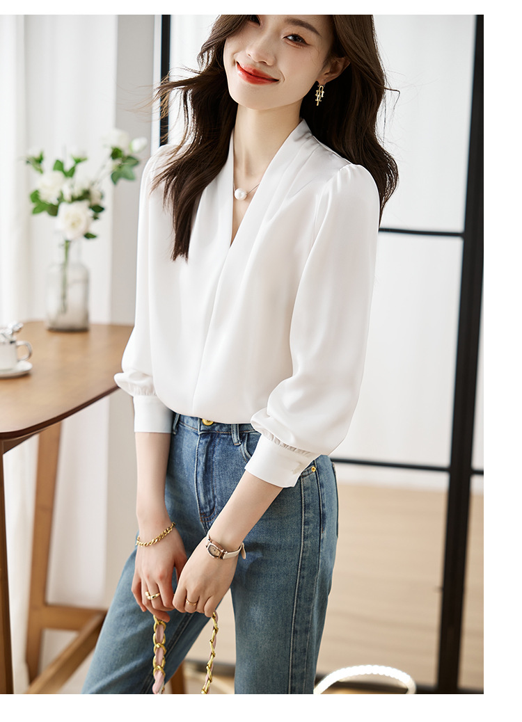 엄선된 고급 심플 셔츠 여성 봄 기질 브이넥 가벼운 성숙한 스타일 통근 아세테이트 새틴 쉬폰 셔츠 상의