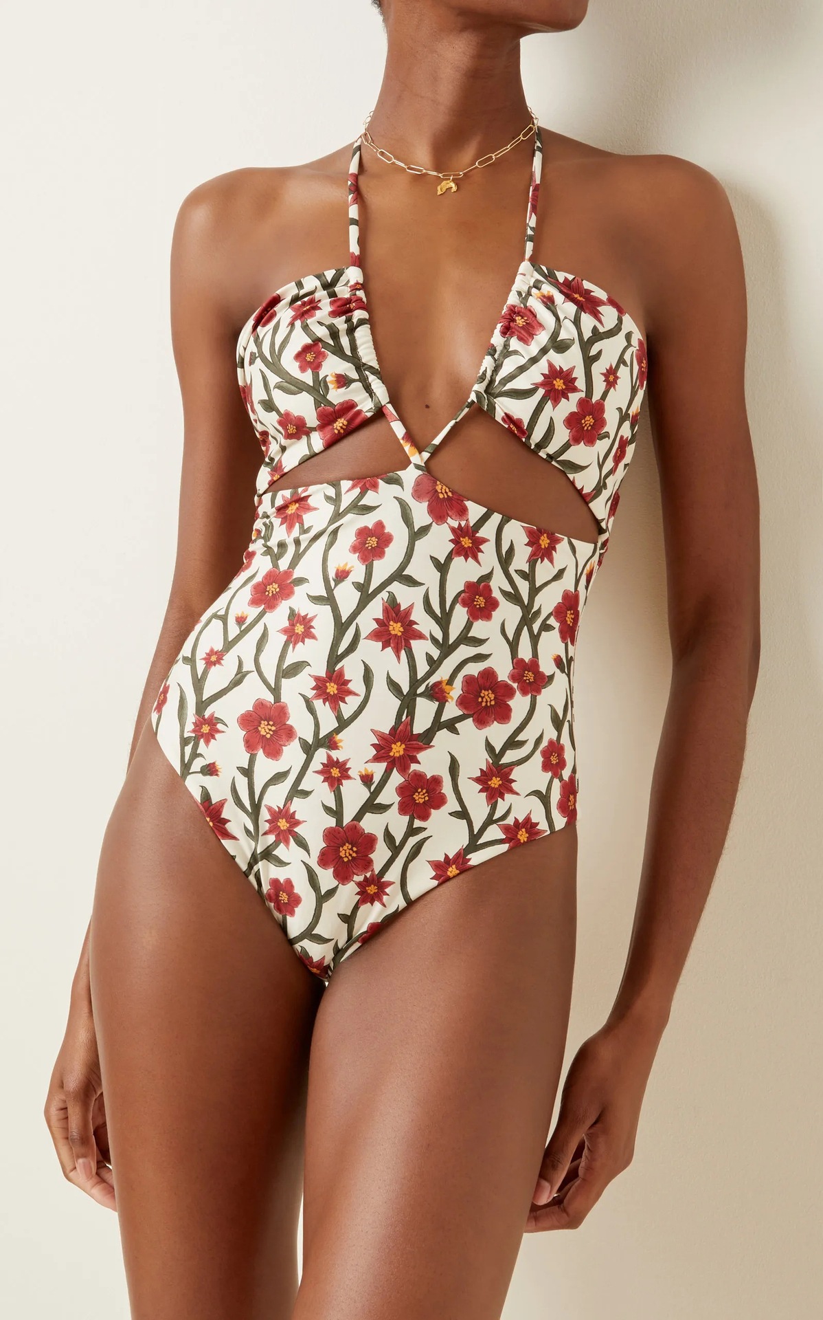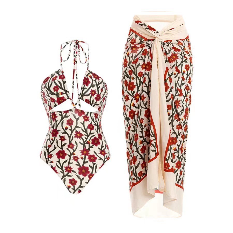2023 유럽과 미국의 새로운 투피스 원피스 수영복 보수적 인 중공 레이스 업 넥 힙 스커트 여성용 대외 무역 수영복스토어 가기
