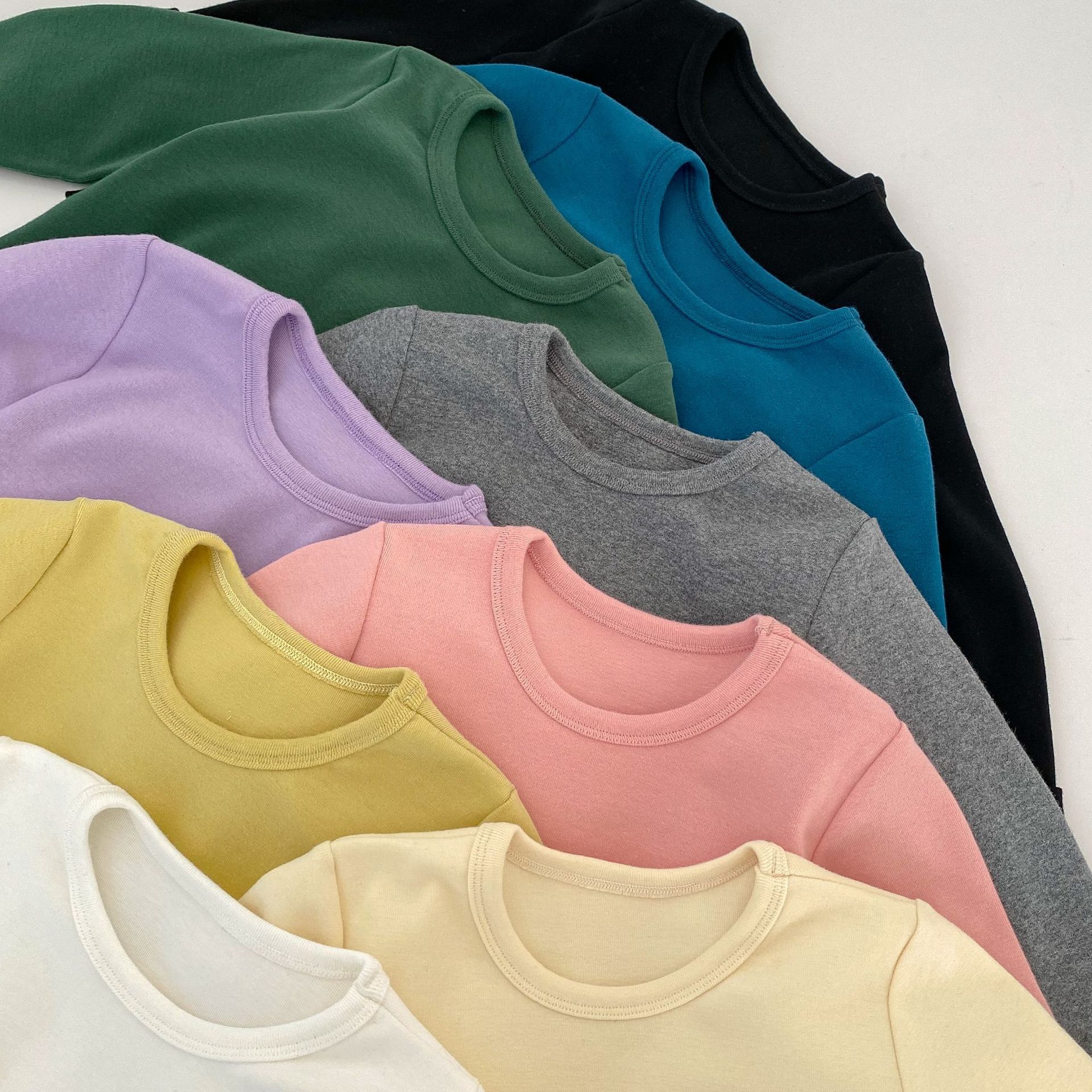 2023 남자의 보물 가을 새로운 아동베이스 셔츠 크루넥 티셔츠 기본베이스 셔츠 여성용 보물 단색 긴팔 탑