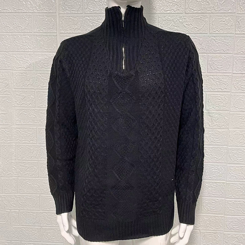 2025 가을 겨울 신상 니트 스웨터 지퍼 하이넥 긴팔 꼬임무늬 스웨터 크로스보더 아마존 유럽 및 미국 남성복스토어 가기