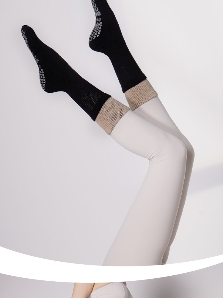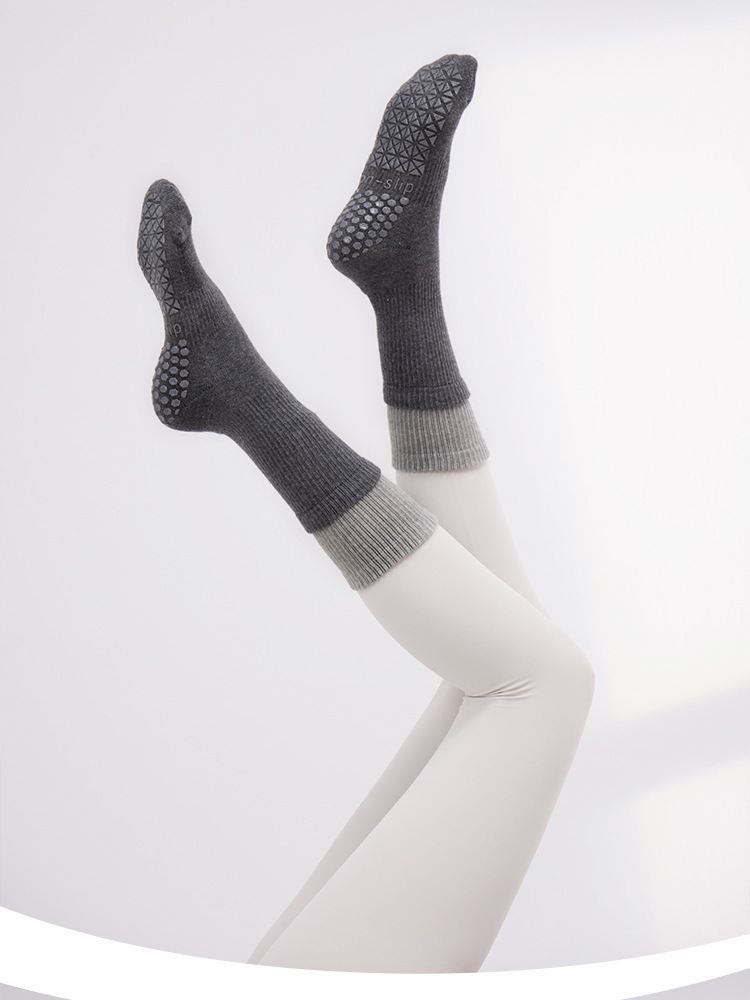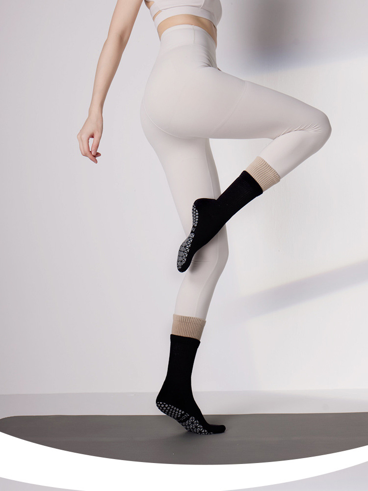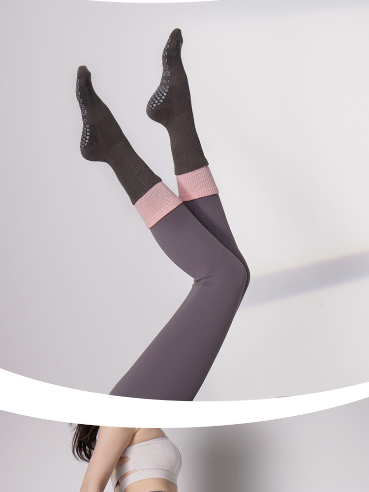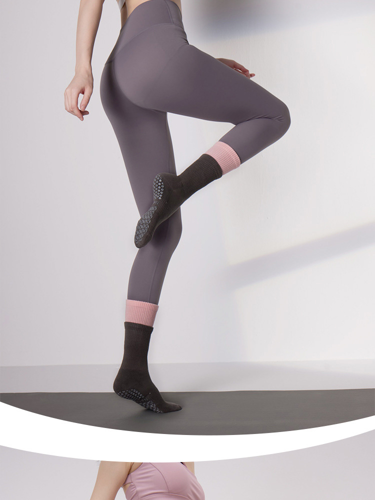 가을 겨울 중간 길이 요가 양말 여성용 미끄럼 방지 필라테스 전용 양말 압박 양말 스포츠 피트니스 신상품 이중 두께