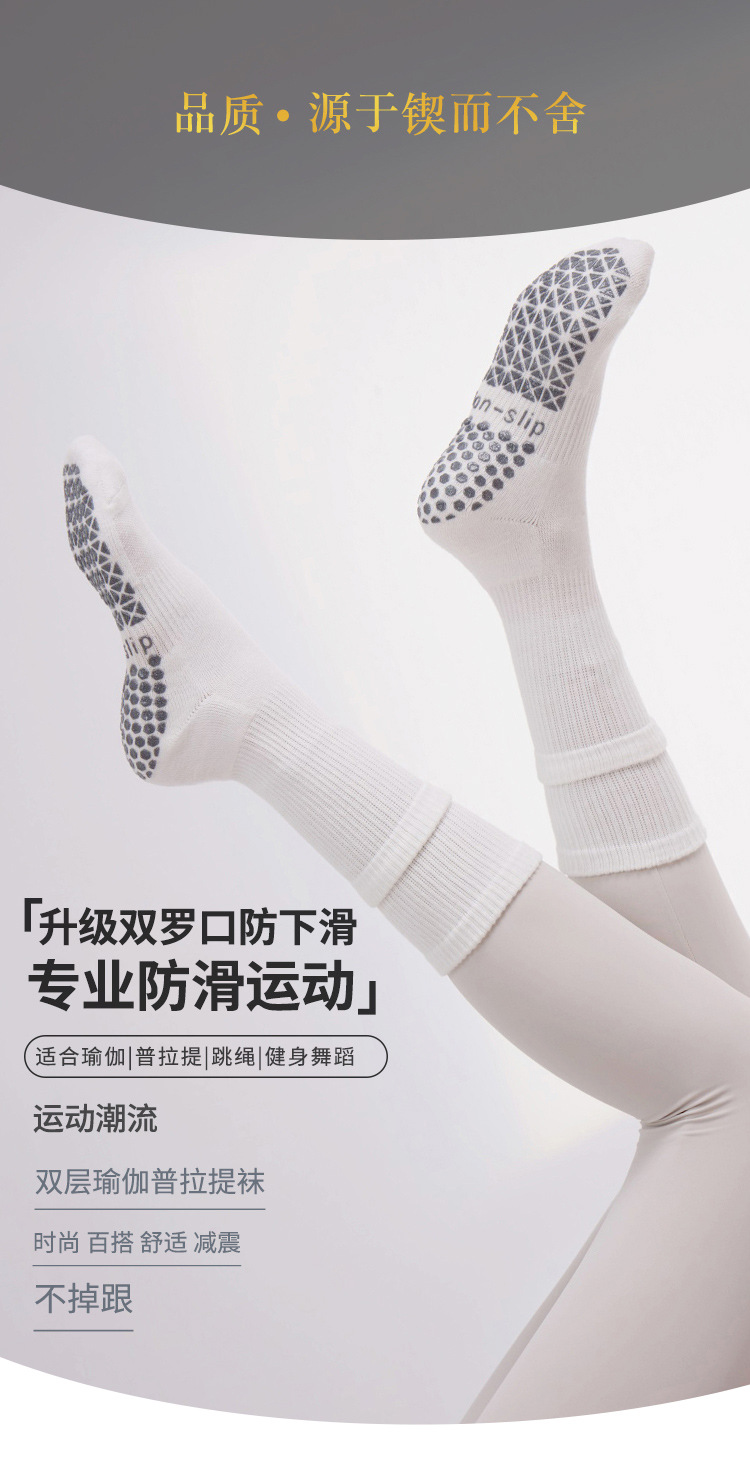가을 겨울 중간 길이 요가 양말 여성용 미끄럼 방지 필라테스 전용 양말 압박 양말 스포츠 피트니스 신상품 이중 두께스토어 가기