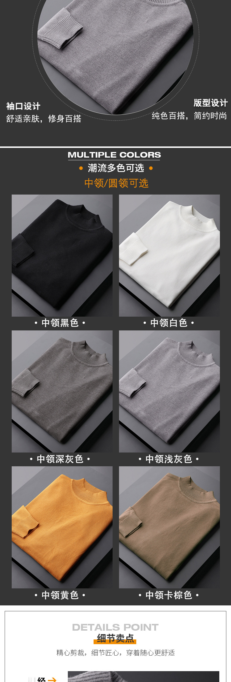 긴팔 스웨터 남성용 가을과 겨울 따뜻한 풀오버 하프 하이 칼라 단색 스웨터 니트베이스 셔츠 유행 모든 매치스토어 가기