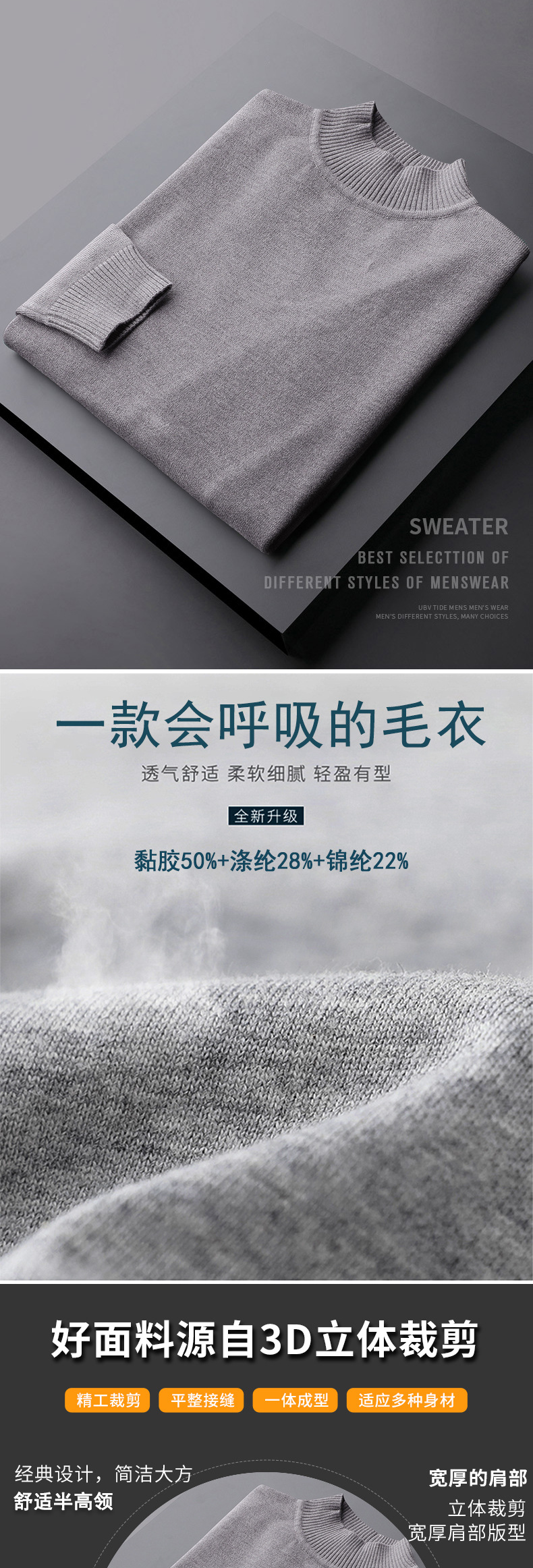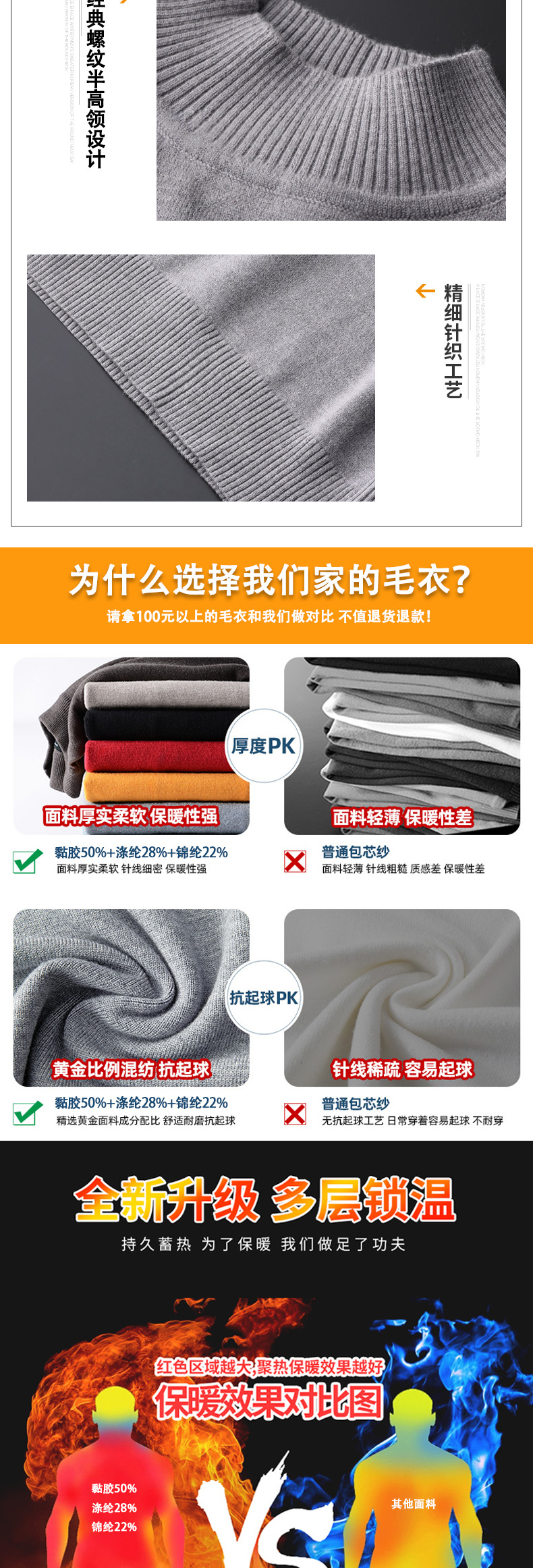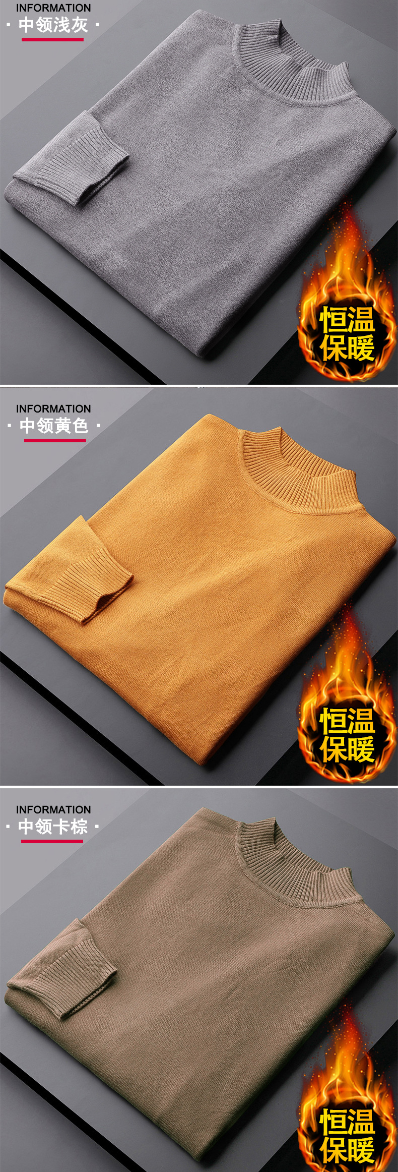 긴팔 스웨터 남성용 가을과 겨울 따뜻한 풀오버 하프 하이 칼라 단색 스웨터 니트베이스 셔츠 유행 모든 매치