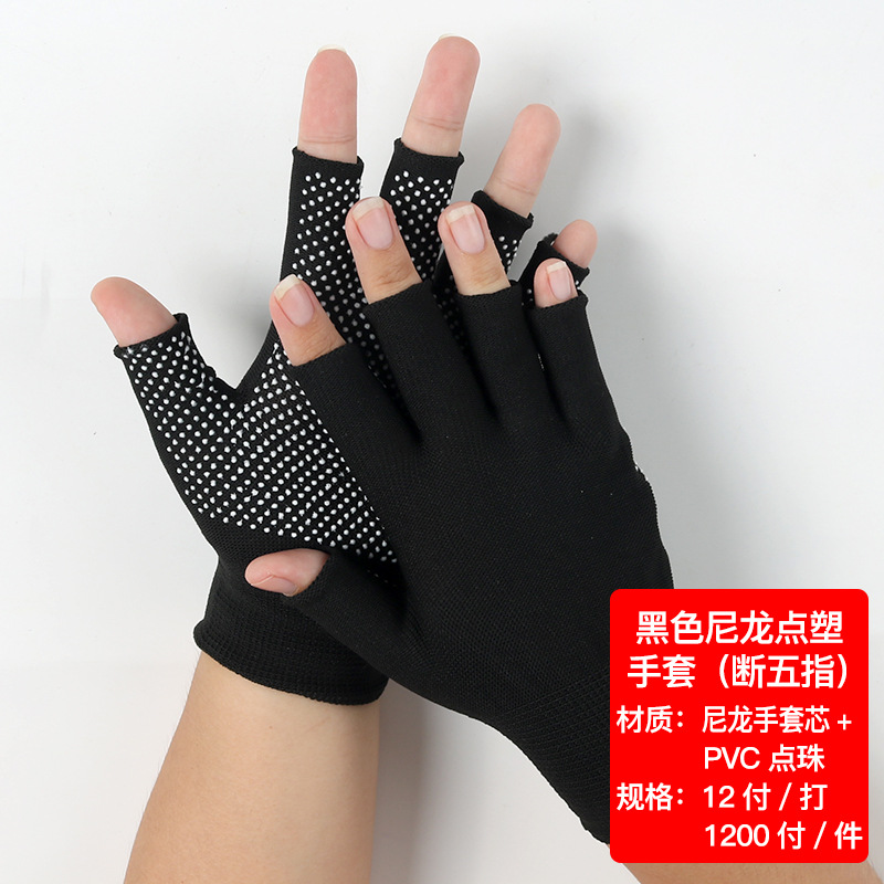 • 깨진 다섯 손가락 검은 나일론 포인트 플라스틱 장갑