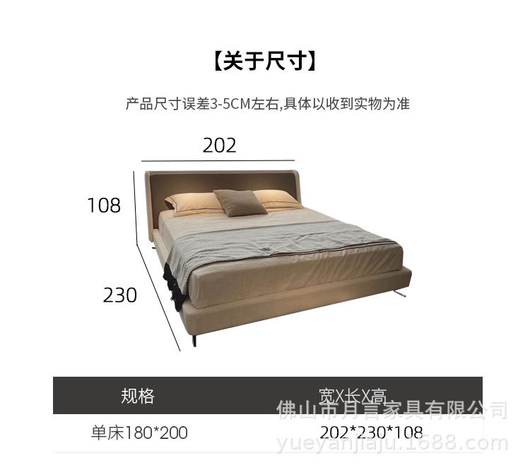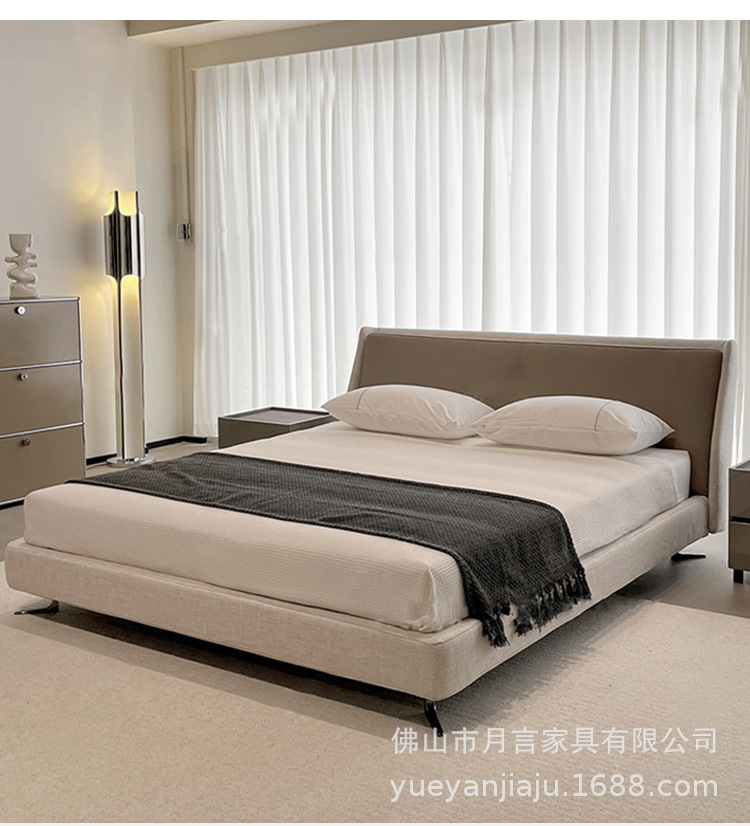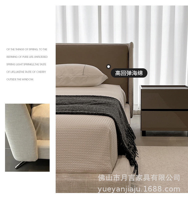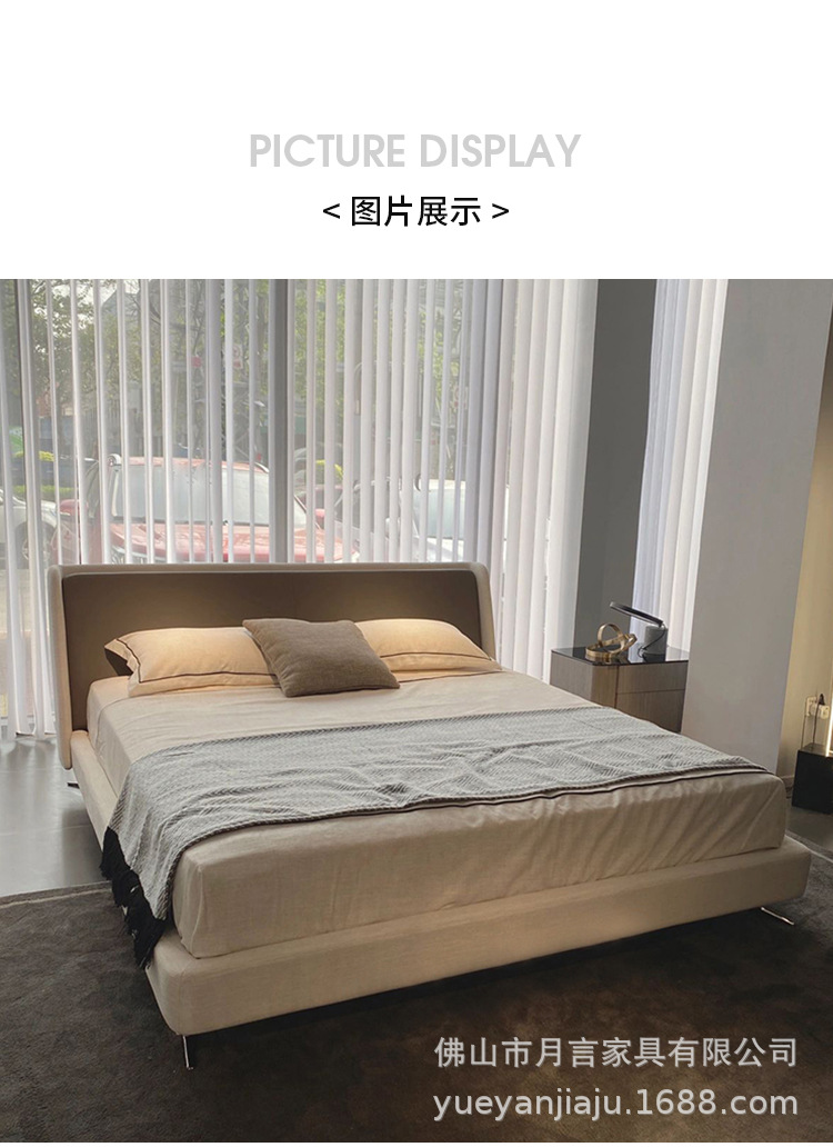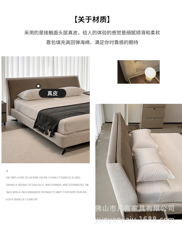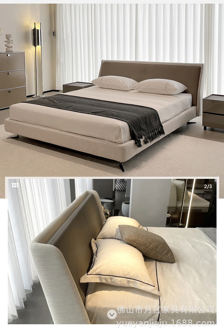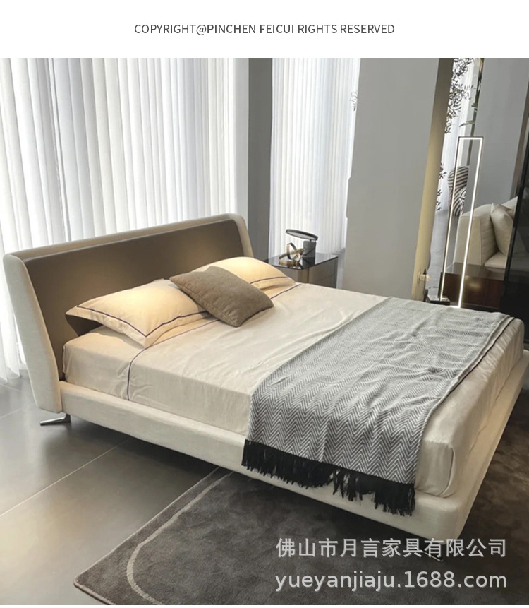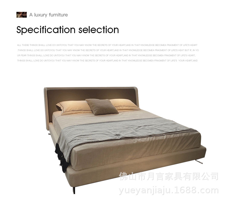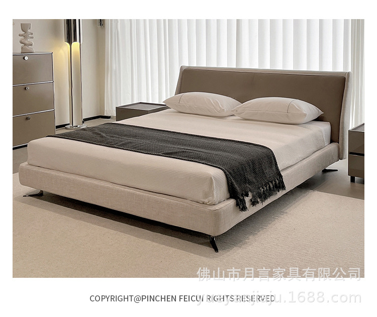 이탈리아 대형 평면형 침실용 천연 가죽 침대 디자이너 미니멀리스트 스타일 스펜서 골든 에이지 침대 부드러운 침대 원목 프레임스토어 가기
