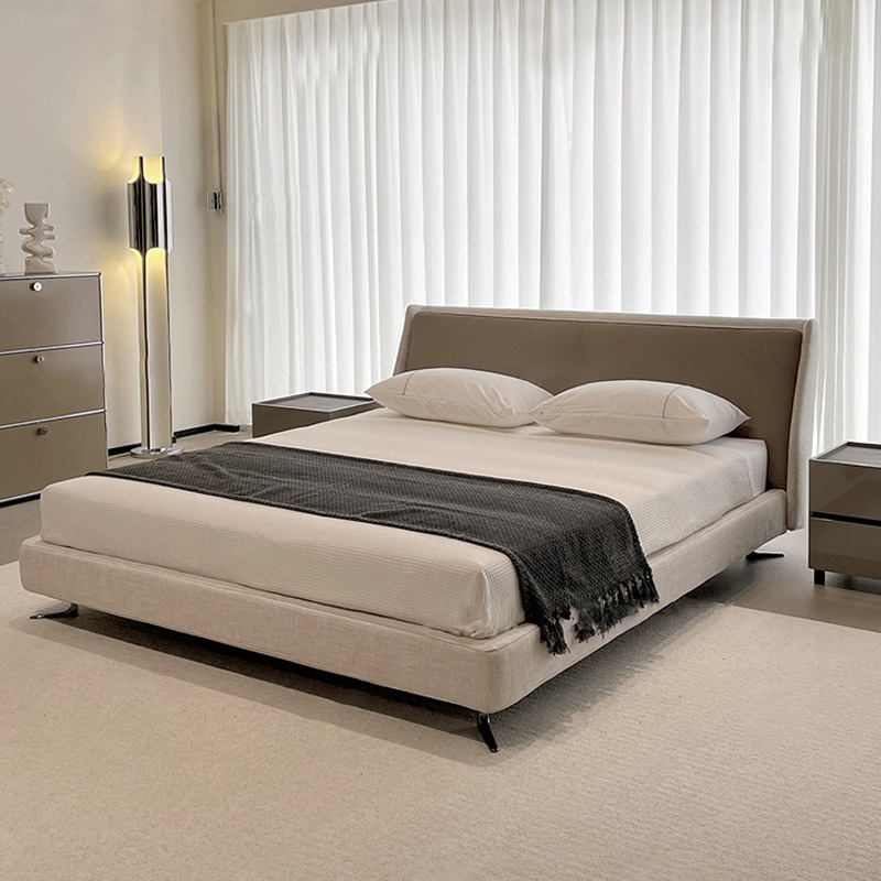 이탈리아 대형 평면형 침실용 천연 가죽 침대 디자이너 미니멀리스트 스타일 스펜서 골든 에이지 침대 부드러운 침대 원목 프레임