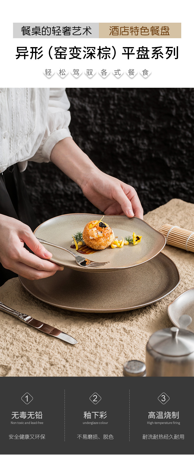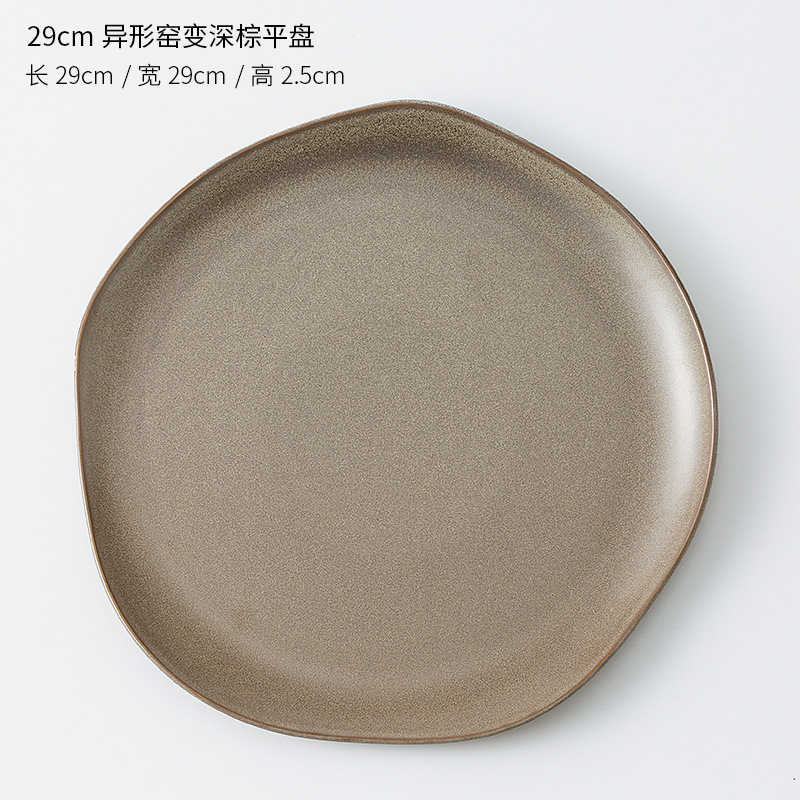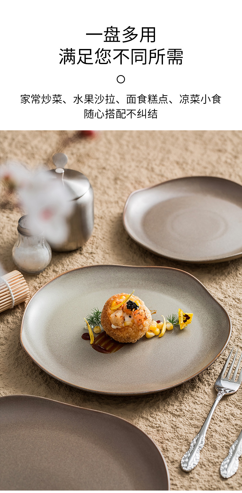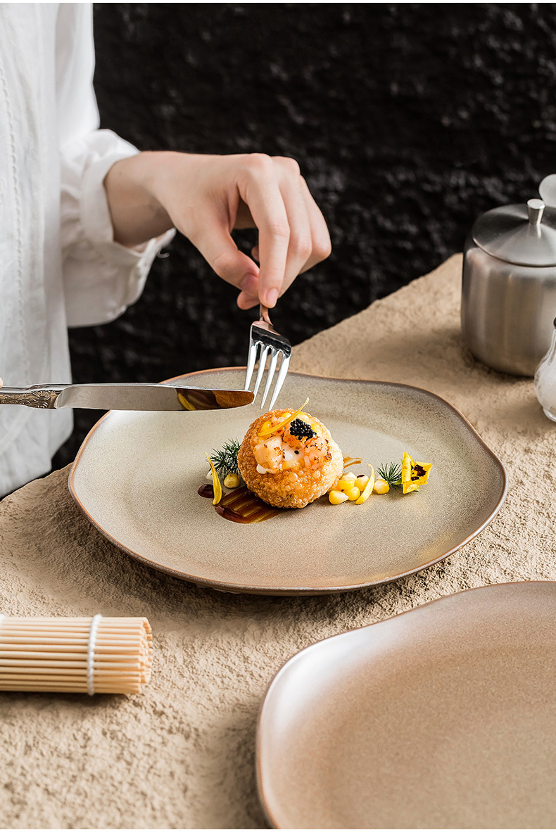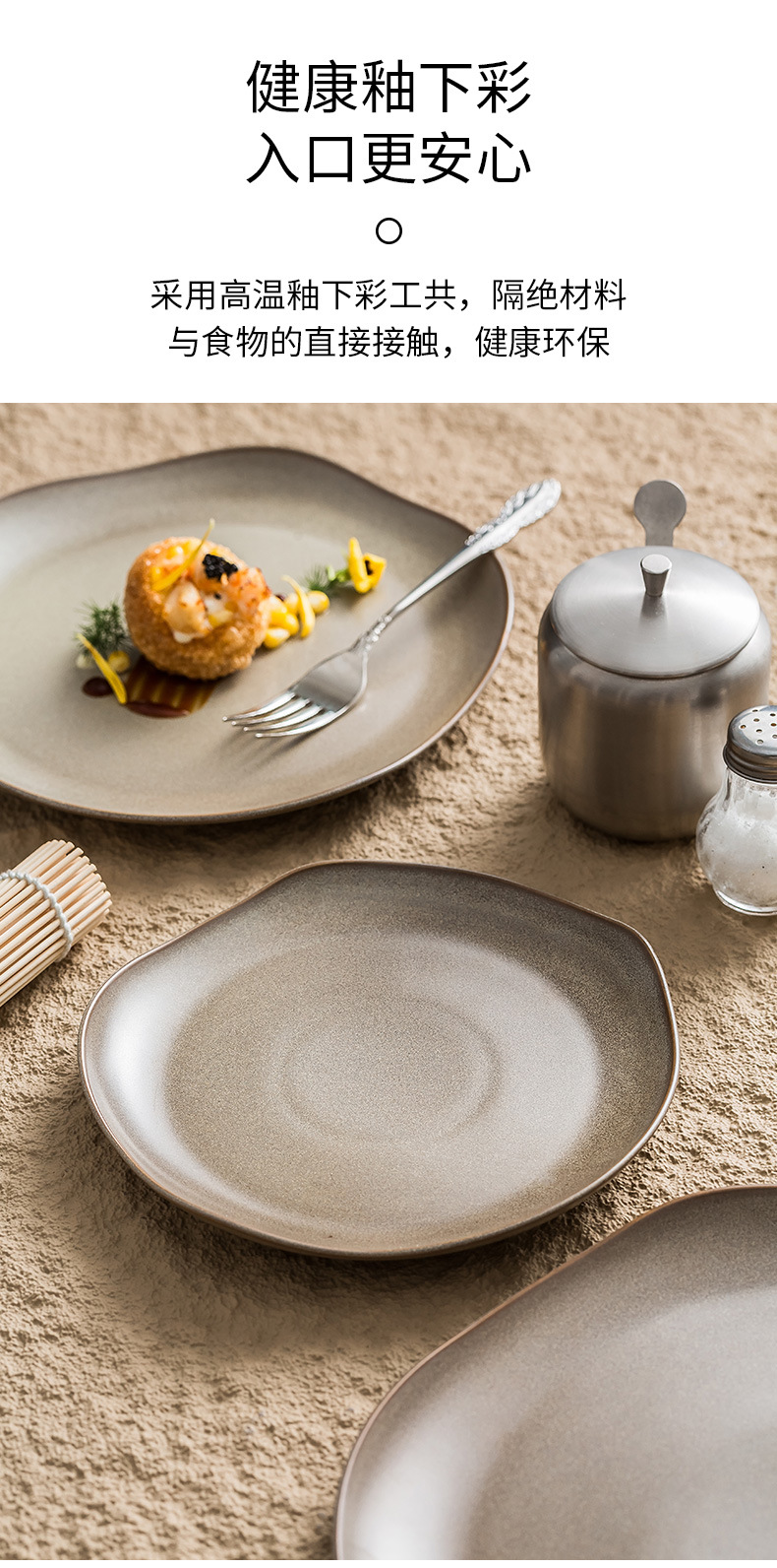 재고 세라믹 새로운 세라믹 일본식 빈티지 디스크 달콤한 접시 서양 음식 플랫 플레이트 크로스 테두리 호텔 얕은 접시 스테이크 접시