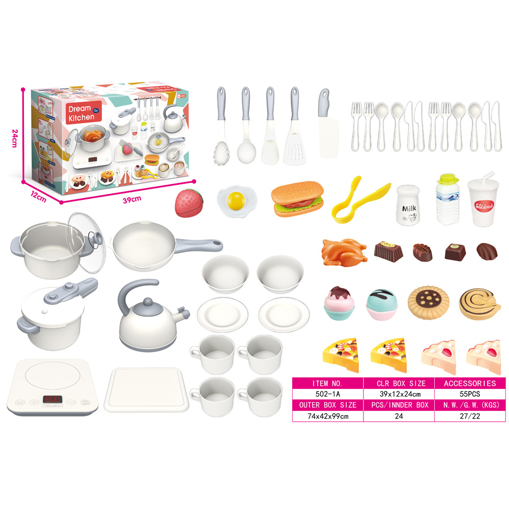 크로스 보더 어린이 집 시뮬레이션 터치 주방 식기 소리와 가벼운 음악 과일 케이크 절단 음악 장난감 세트