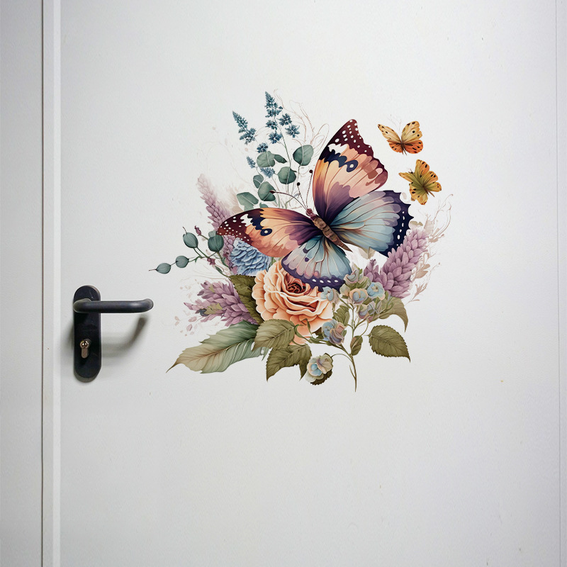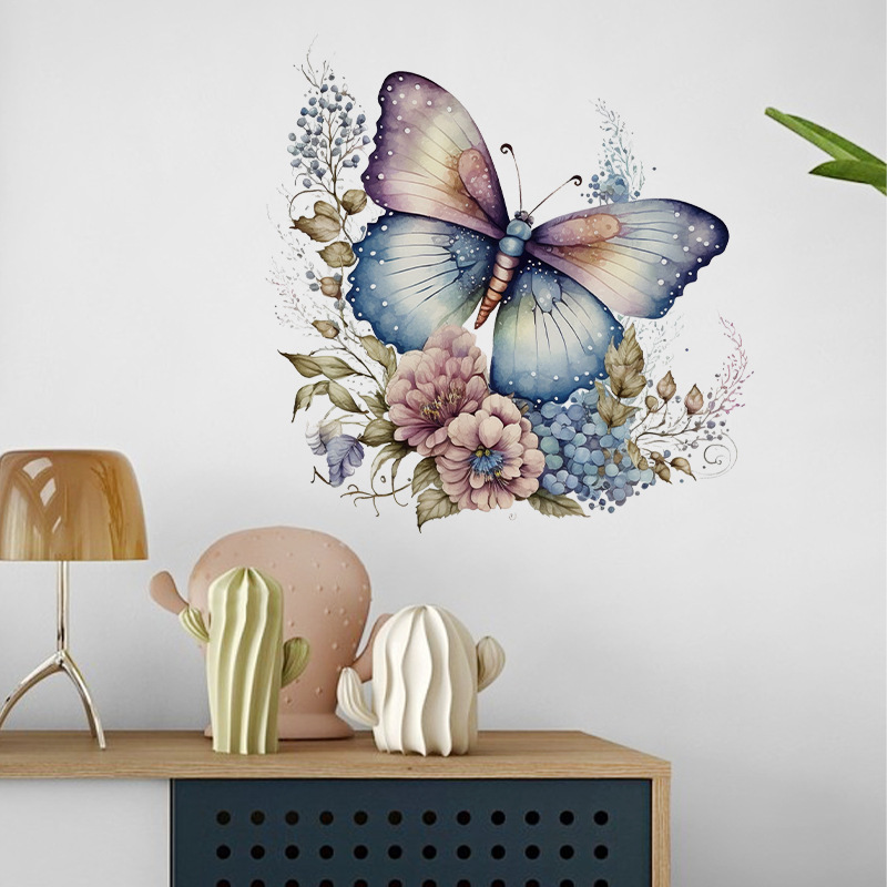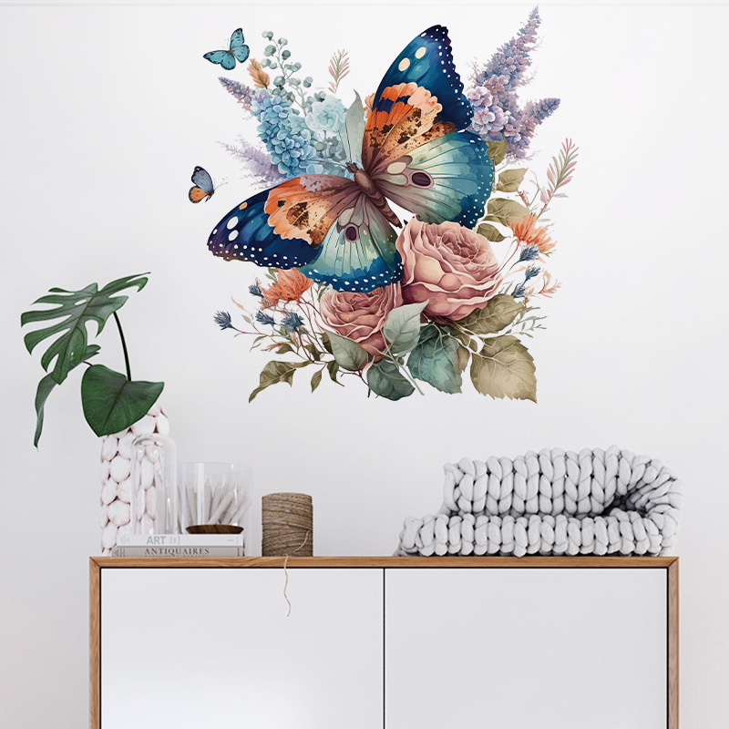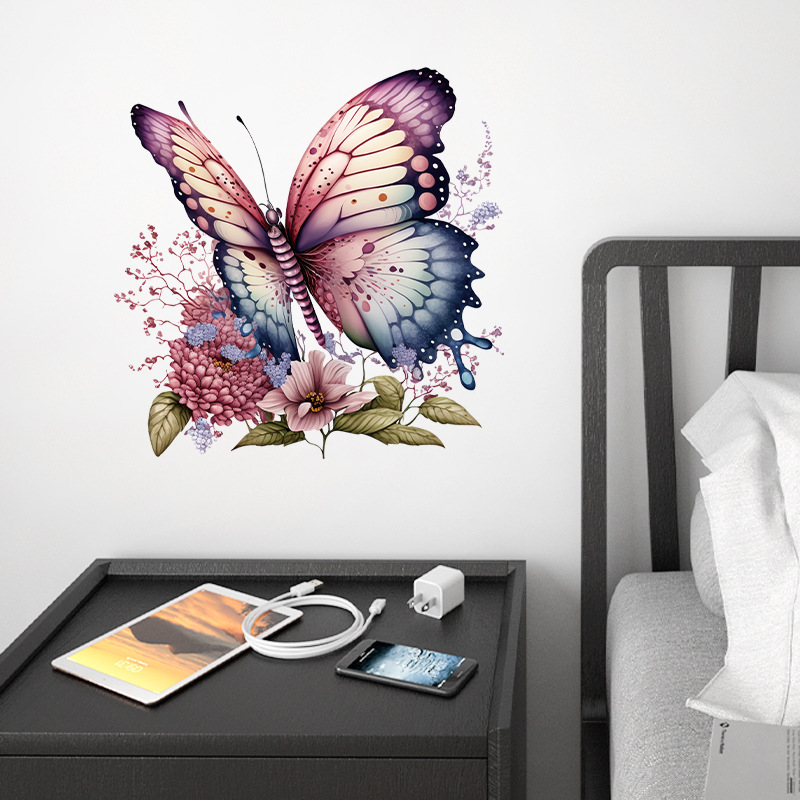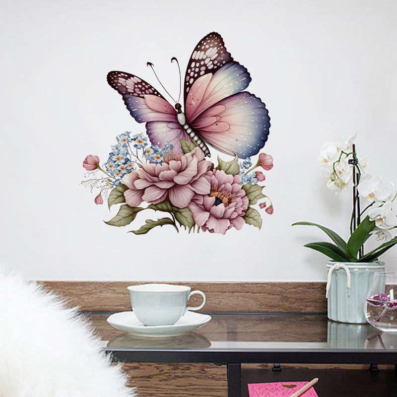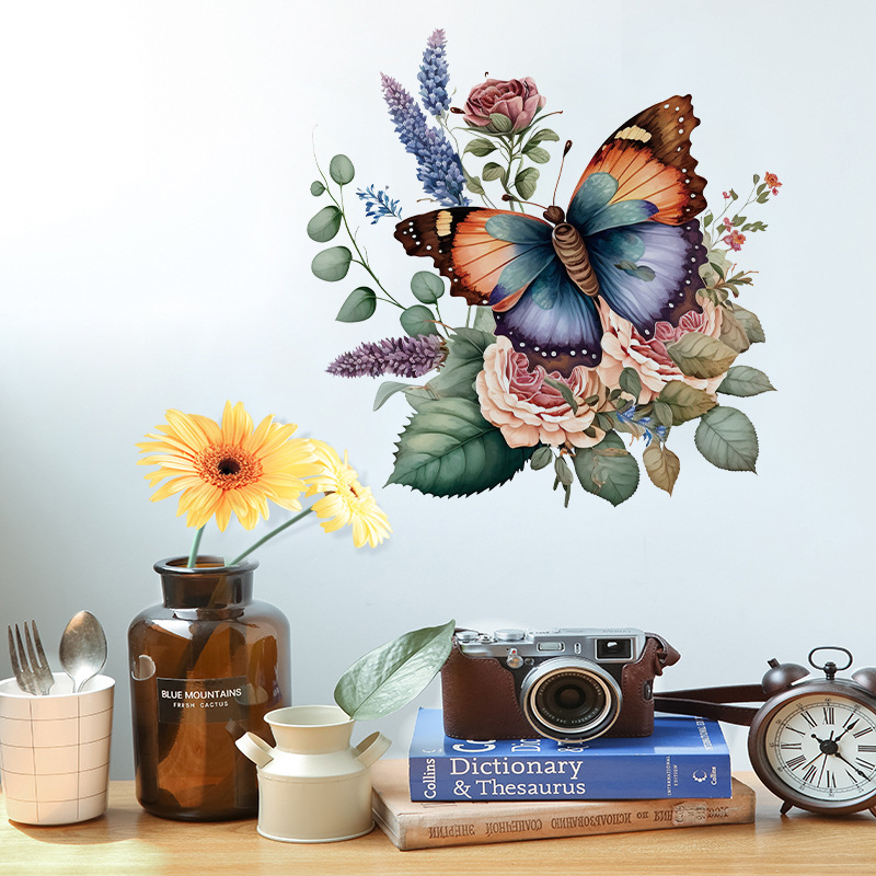 꽃과 나비 벽 스티커 도매, 소녀 침실 장식, 어린이 방 화장실 스티커, 자가 접착식