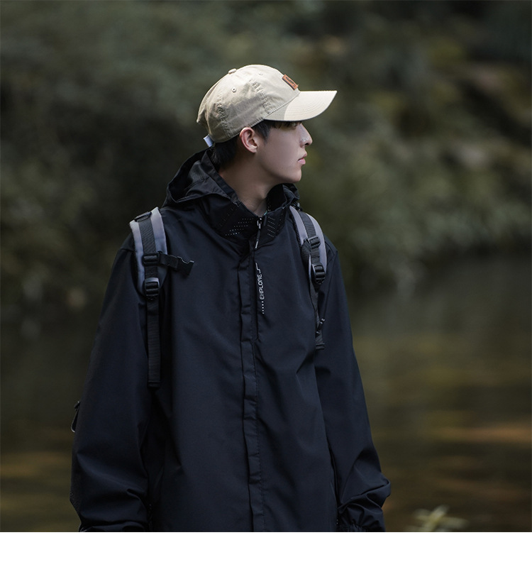블랙 사무라이 재킷 일본식 아메리칸 스타일 하이 칼라 후드 작업 재킷 남성용 봄과 가을 커플 착용 기능성 재킷