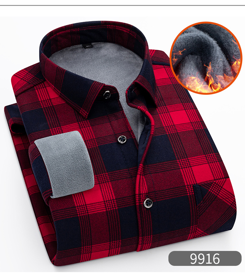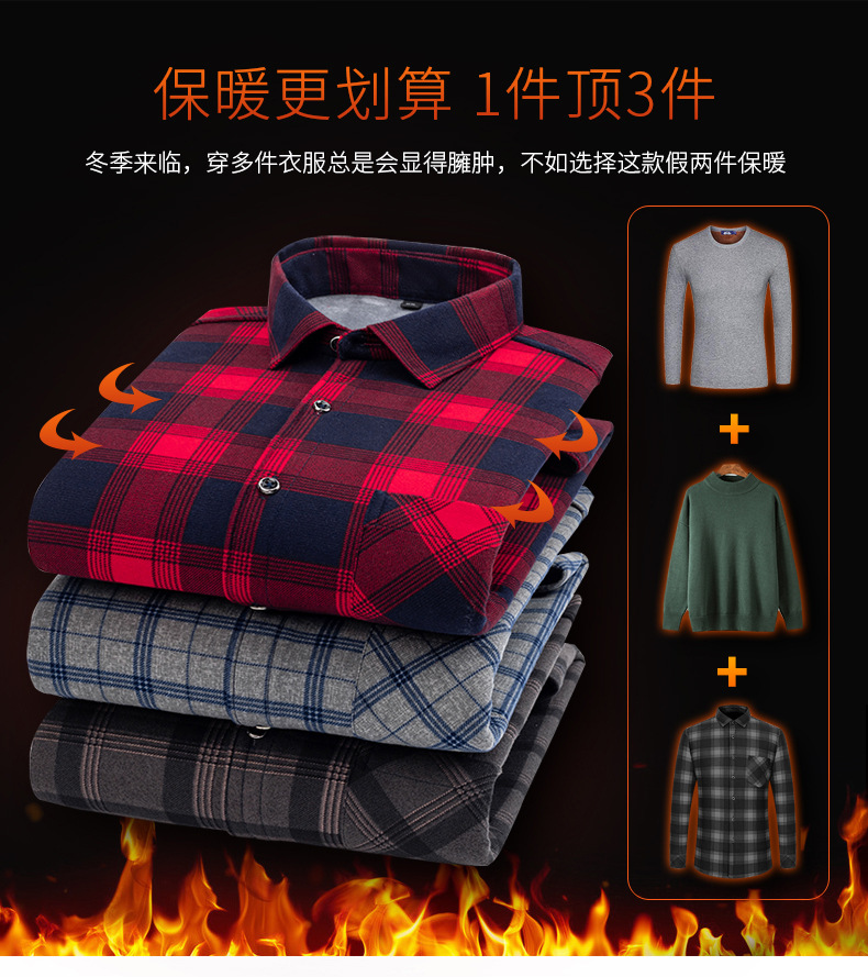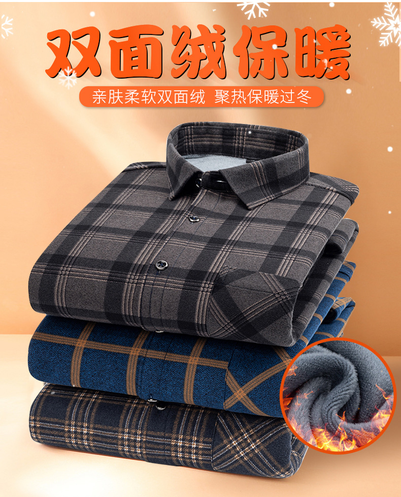 엄선된 공장 제품 플러스 벨벳 두꺼운 기모 격자 무늬 셔츠 남성 긴팔 트렌디 셔츠 청년 및 중년 따뜻한 탑 가을 겨울