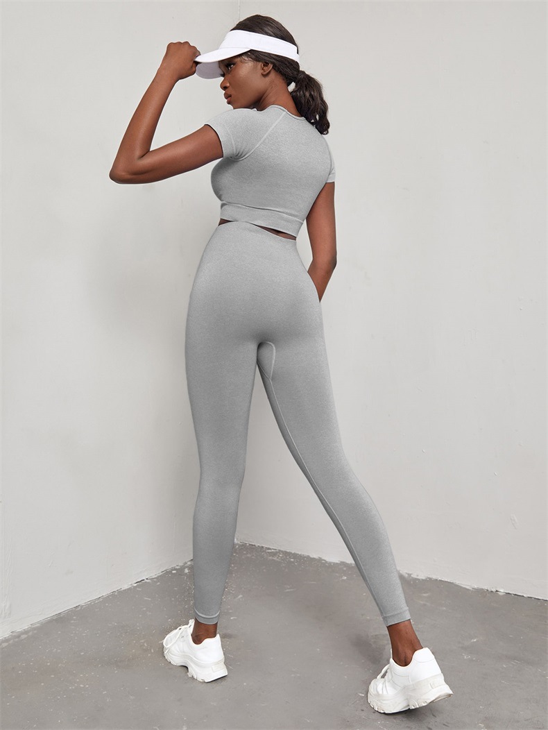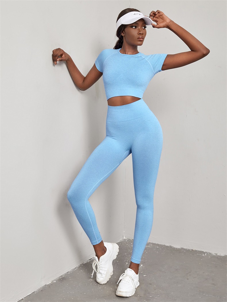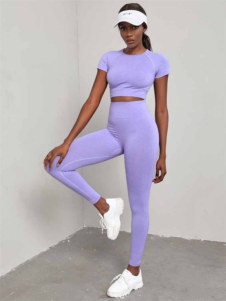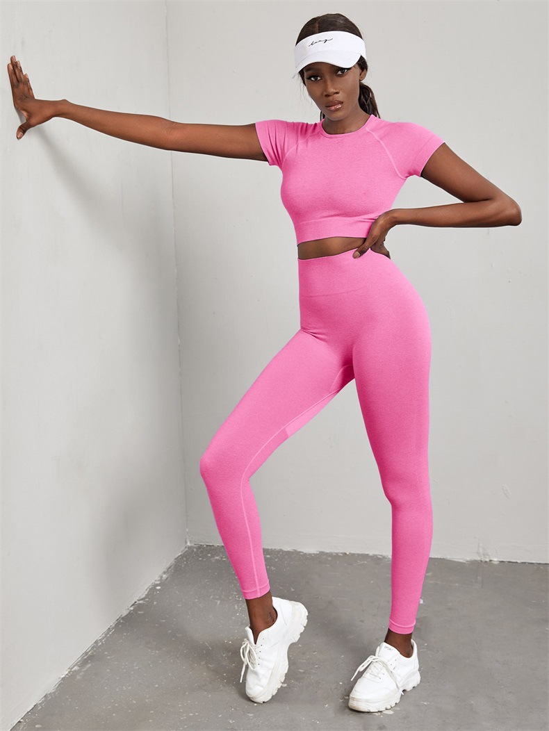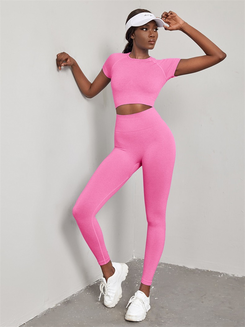 뜨거운 유럽과 미국 뜨거운 원활한 스포츠 요가 세트 세트 여자의 빠른 건조 피트니스 세트 하이 웨이스트 엉덩이 요가 바지 세트