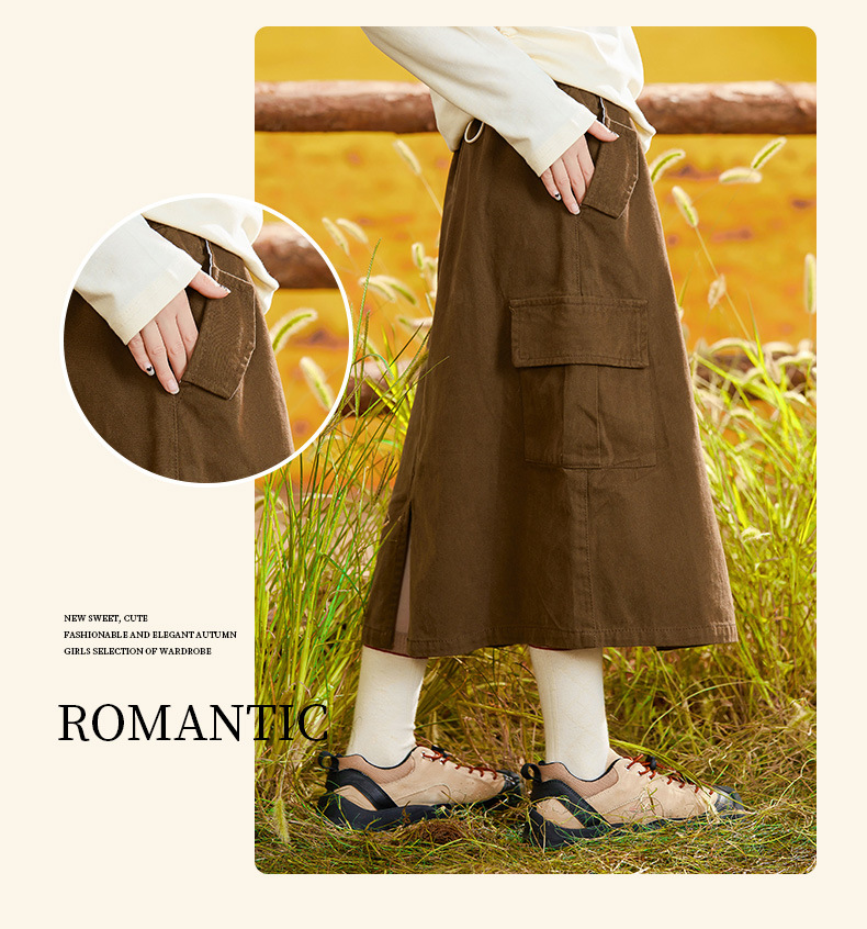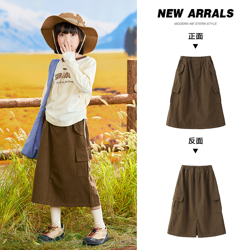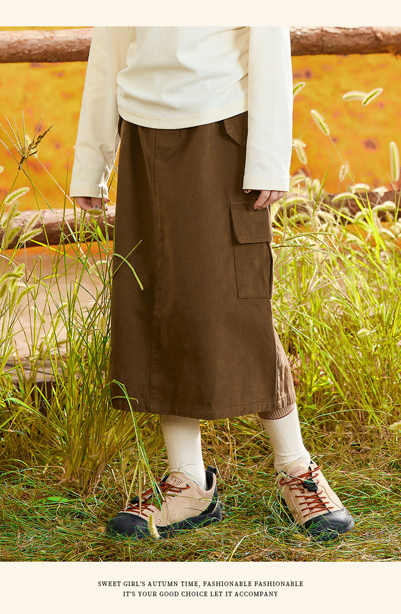 아동용 스커트 여아 가을 중대형 아동복 트렌디하고 멋진 반바지형 스커트 카페색 캐주얼 다용도 기모 두꺼운 스커트스토어 가기