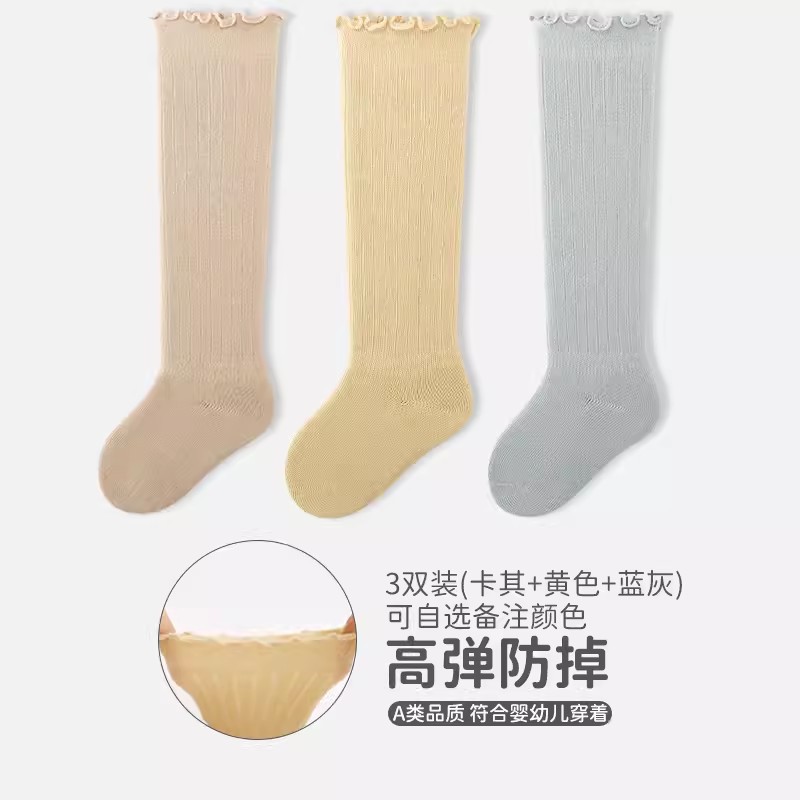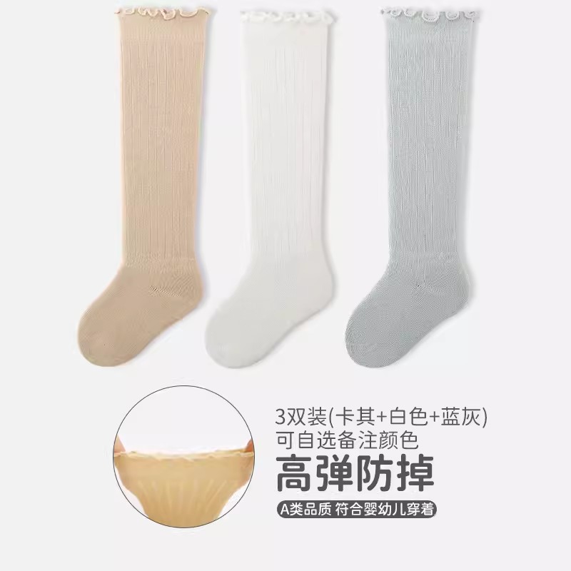 엄선된 3켤레 어린이용 하이삭스, 코마면 아기 양말, 캔디 컬러 러플 가장자리 신생아 양말 A급스토어 가기