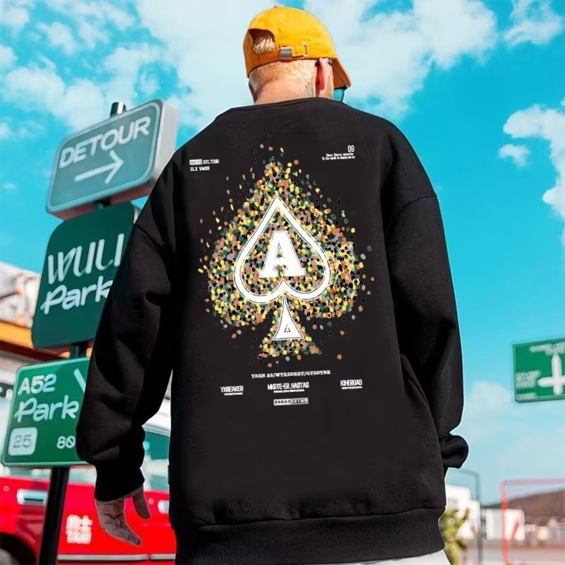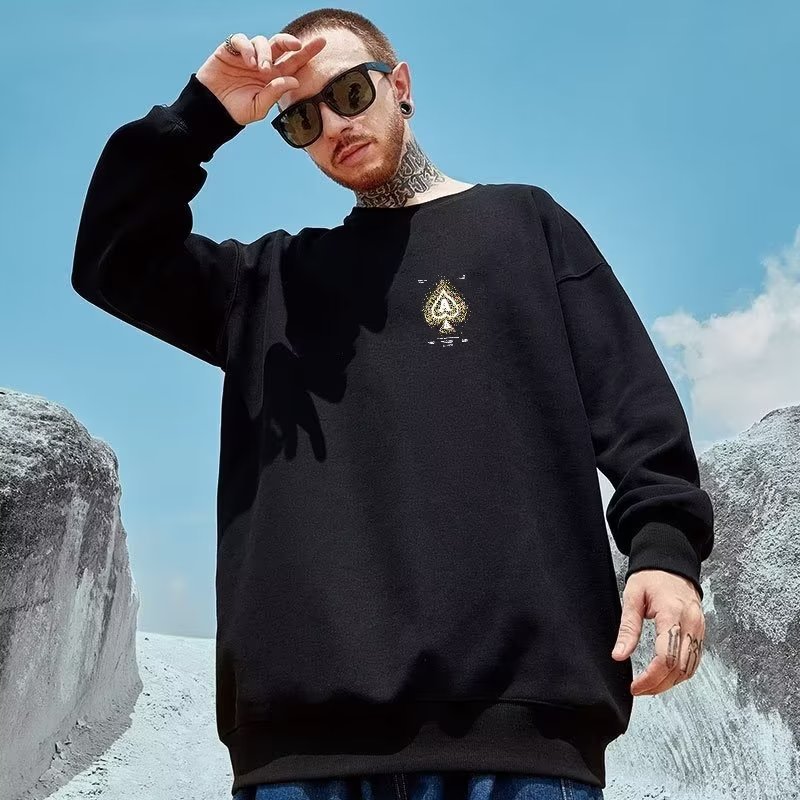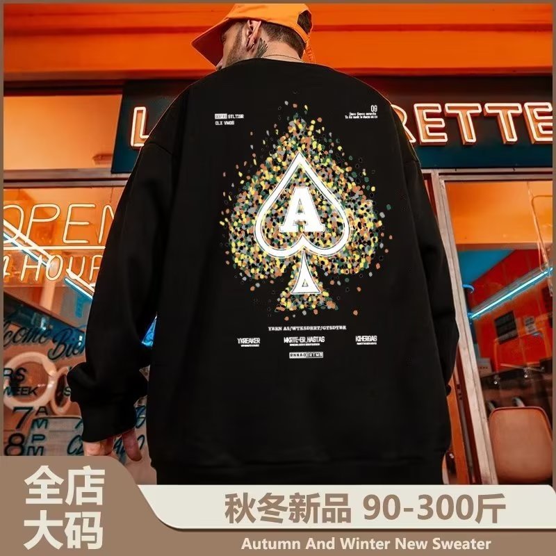 인쇄 플러스 사이즈 남자의 여름 유행 브랜드 뚱뚱한 플러스 사이즈 큰 크기 유행 라운드 넥 느슨한 최고 긴 소매 스웨터 남성용스토어 가기