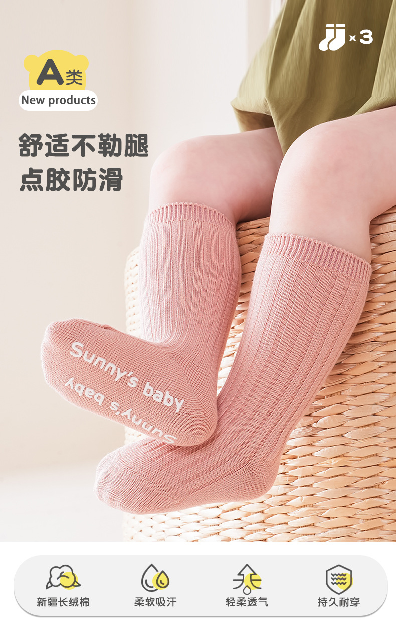 2023 아기 양말 봄과 가을 이중 바늘 면 양말 신생아 유아 미끄럼 방지 시원한 바닥 양말 다리