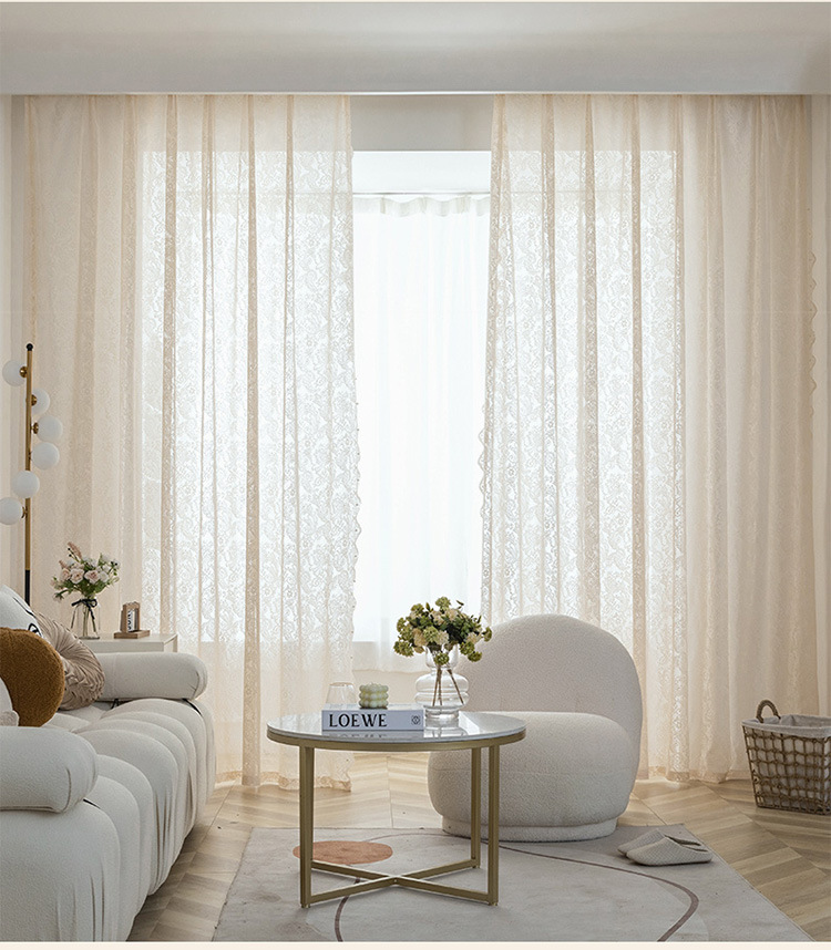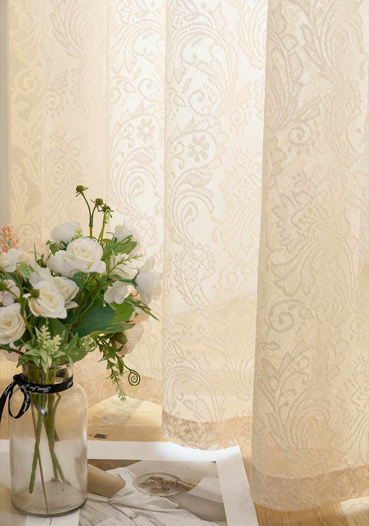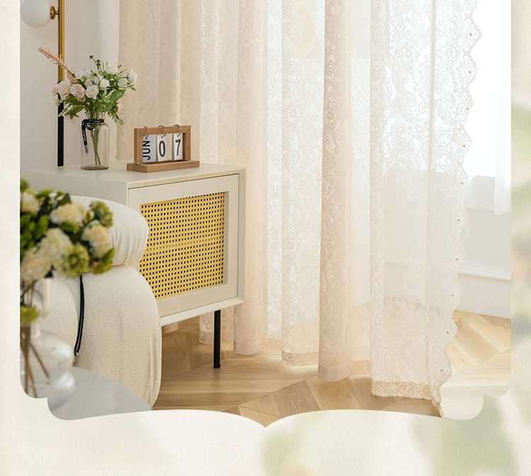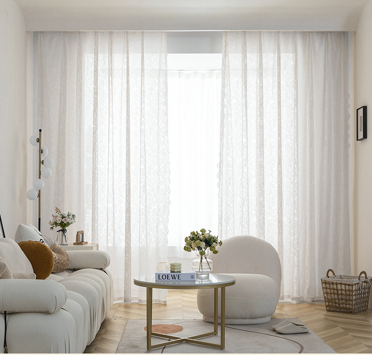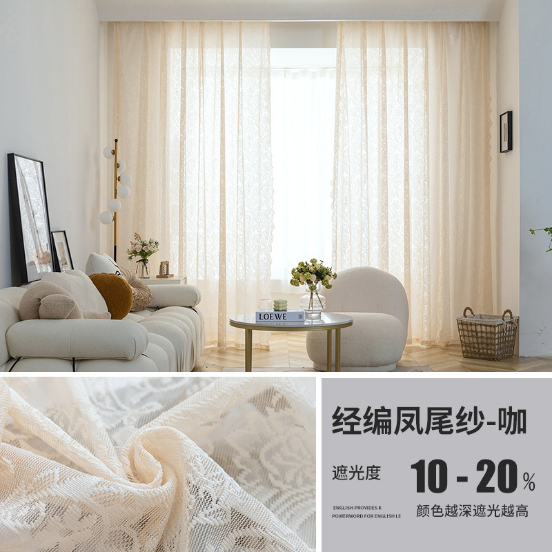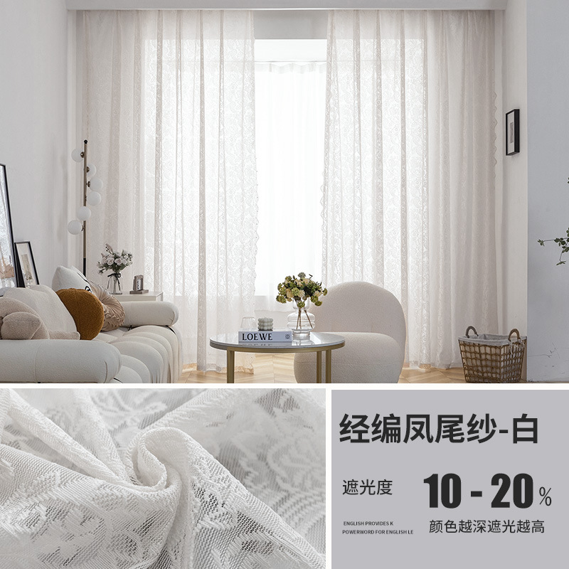 새로운 프랑스 워프 뜨개질 피닉스 꼬리 원사 투명 레이스 화이트 원사 발코니 침실 베이 창 화면 완제품스토어 가기