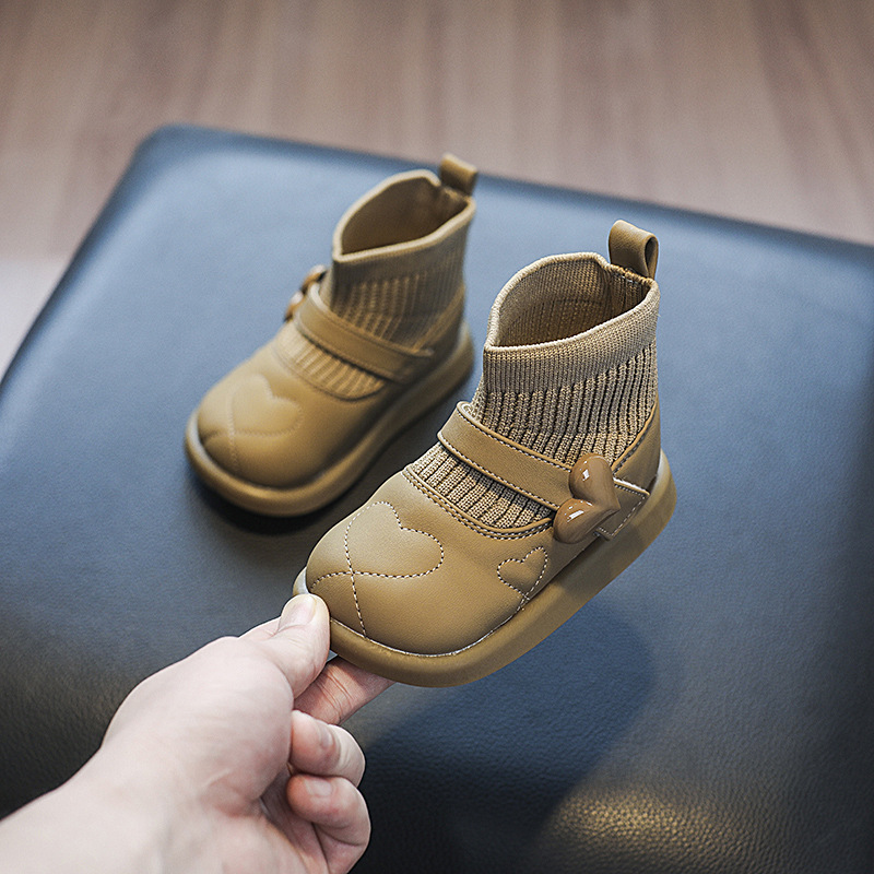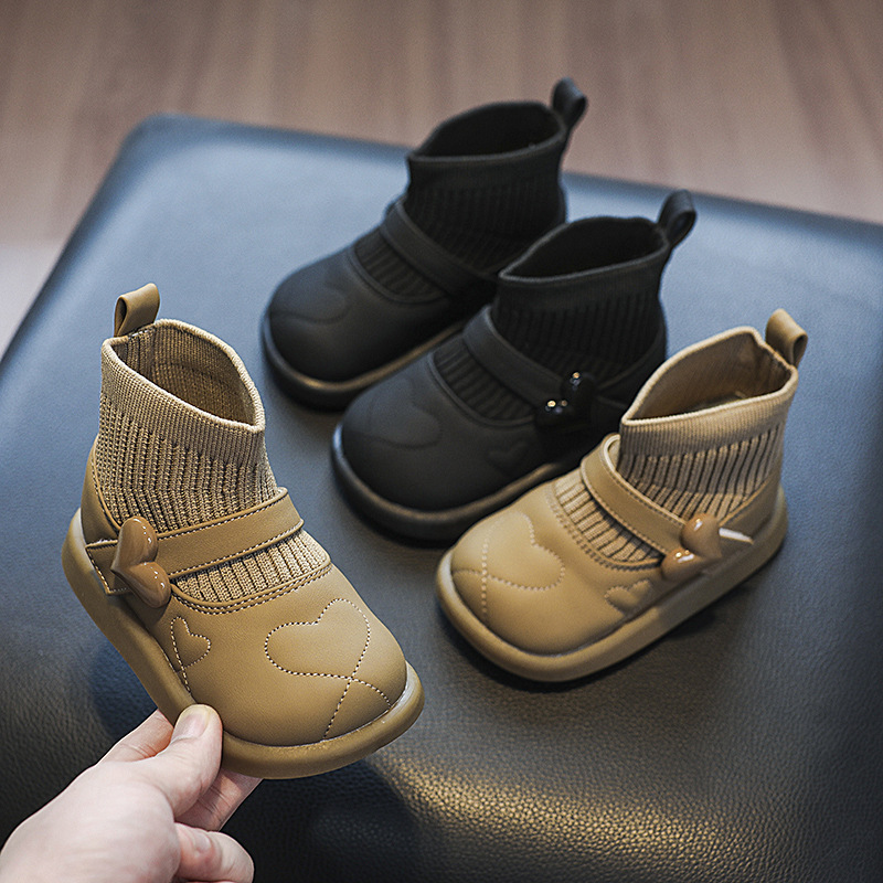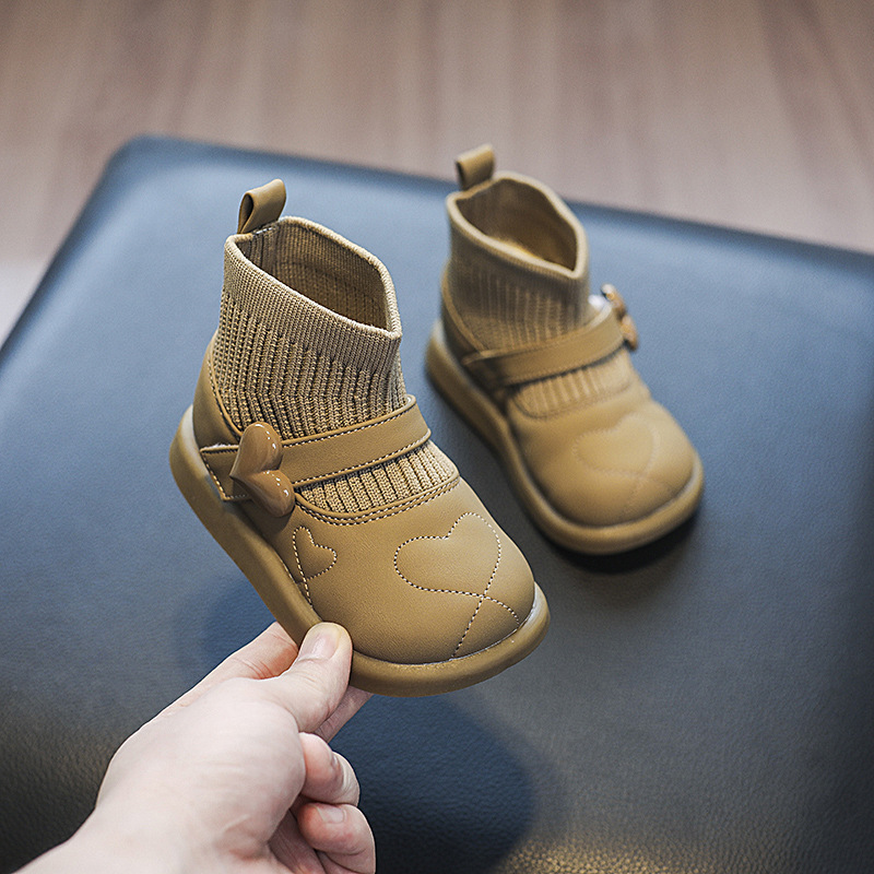 한국 스타일 아기 신발 가을과 겨울 소녀 양말 신발 커버 발 부드러운 단독 미끄럼 방지 공주 신발 캐주얼 유아 마틴 부츠