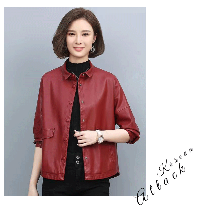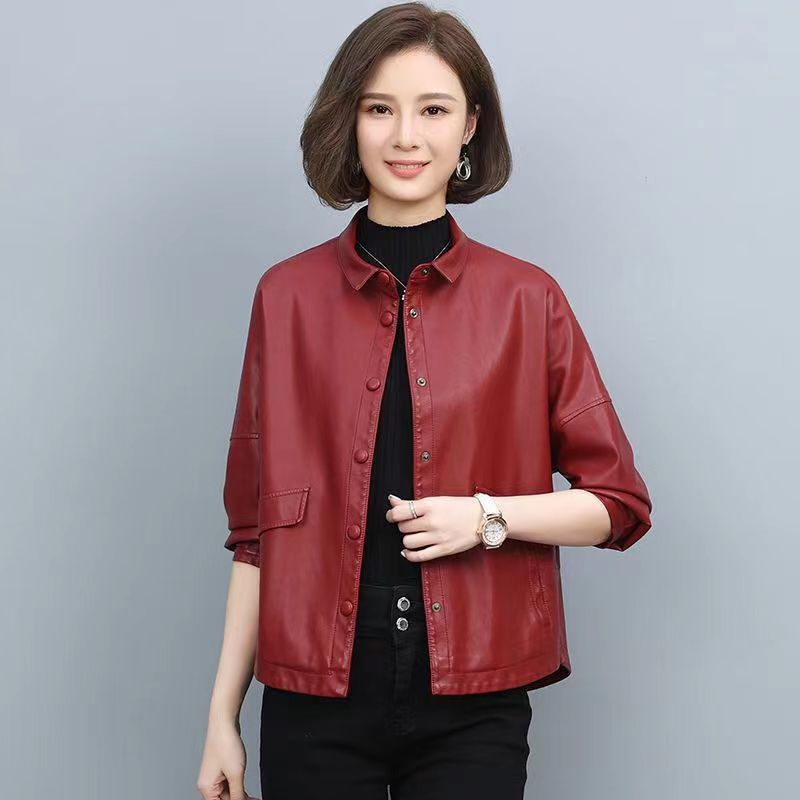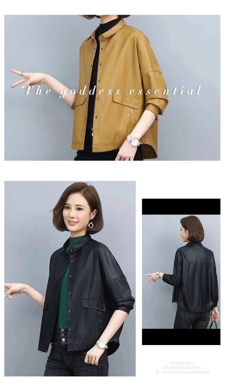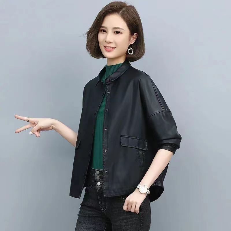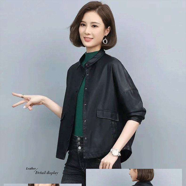새로운 슬림핏 캐주얼 여성용 가죽 라펠 긴 짧은 코트 소매 편안한 가죽 자켓
