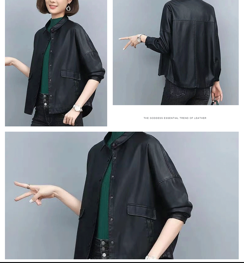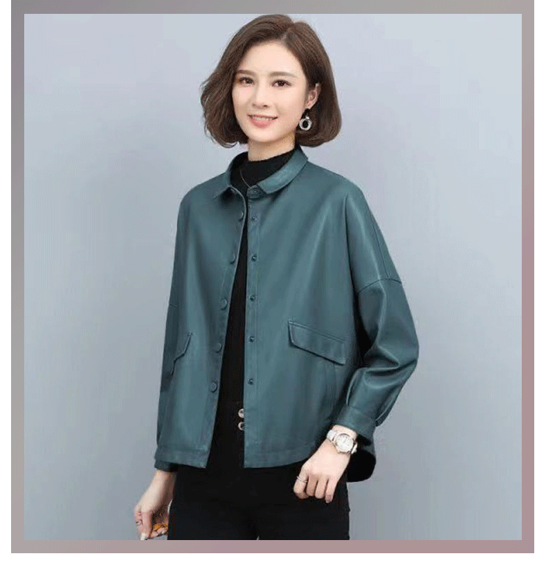 새로운 슬림핏 캐주얼 여성용 가죽 라펠 긴 짧은 코트 소매 편안한 가죽 자켓스토어 가기