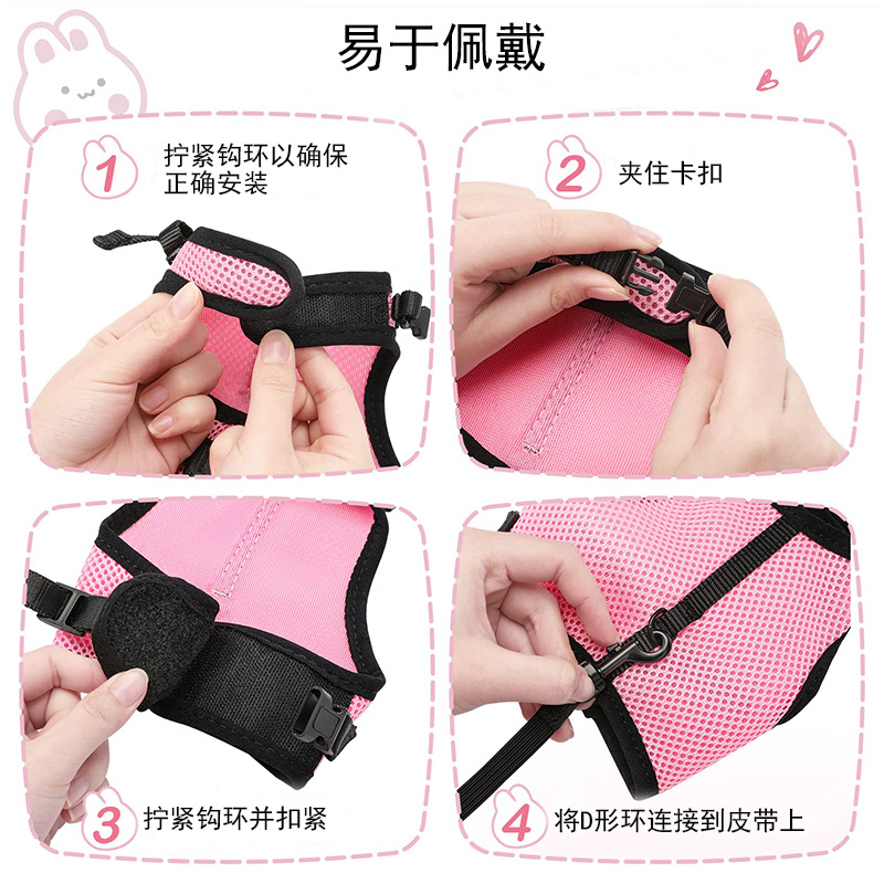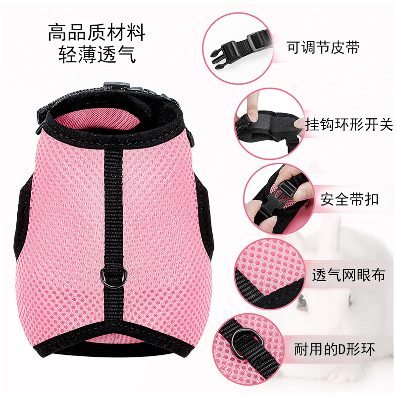 통기성 메쉬 토끼 개 가슴 스트랩 강아지 가슴 뒤로 작은 애완 동물 가죽 끈 개 로프 애완 동물 용품스토어 가기
