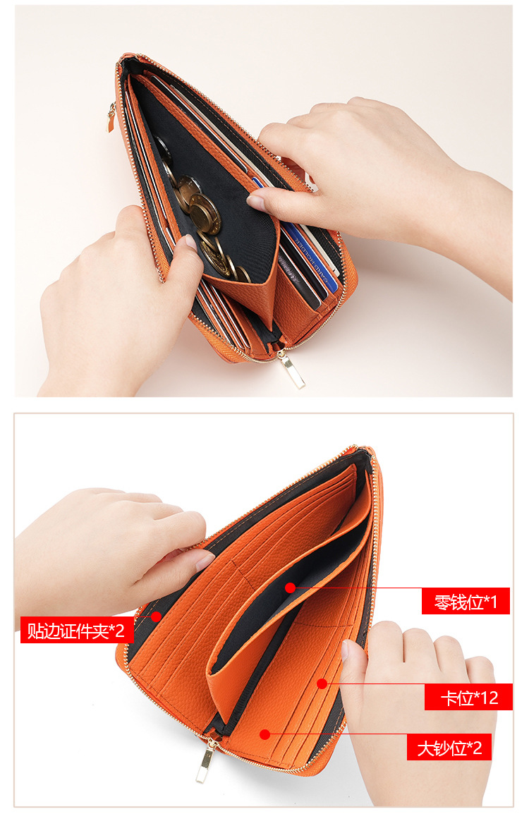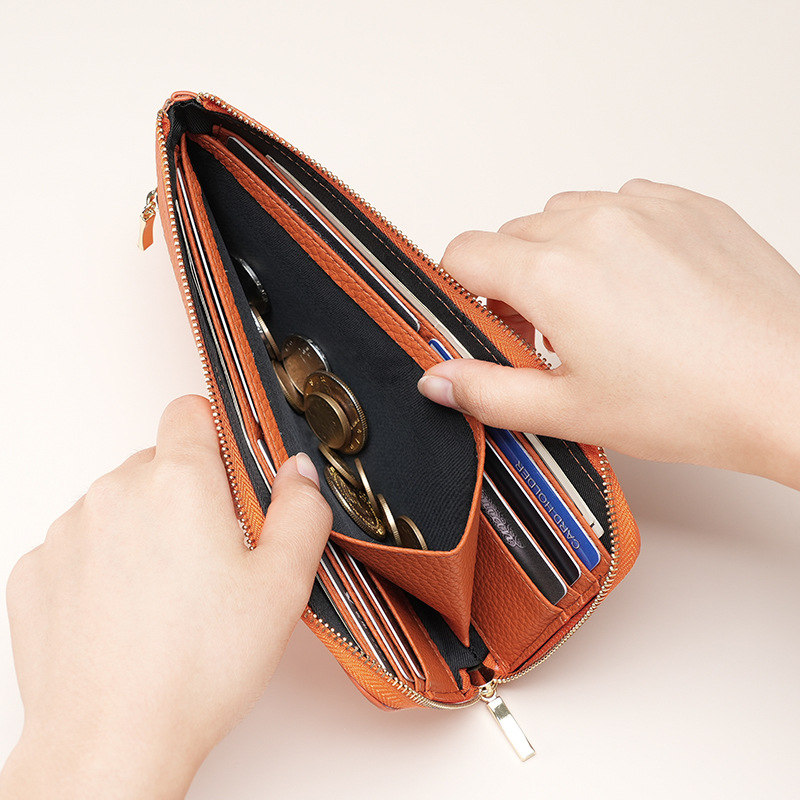 아마존 정품 가죽 여성 지갑 긴 RFID 도난 방지 브러시 소가죽 동전 지갑 멀티 카드 홀더 지갑 여성용스토어 가기