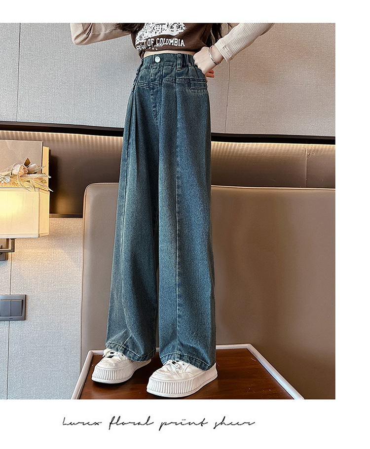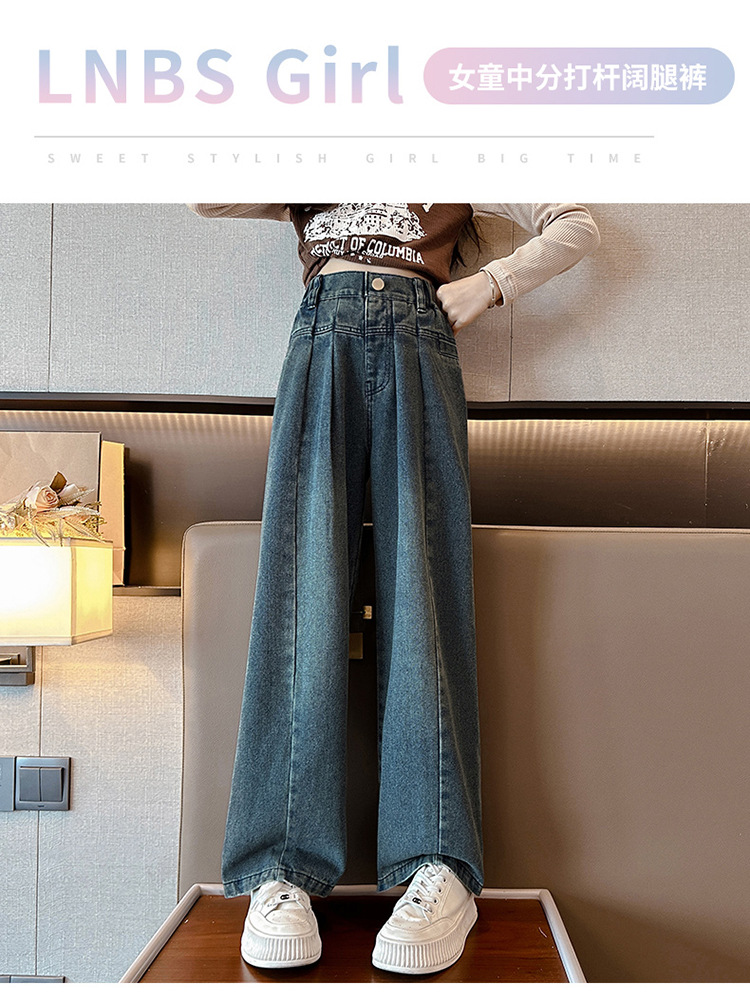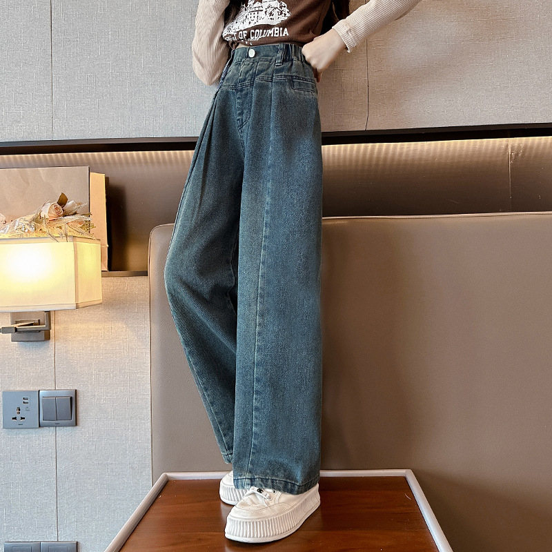 여아 바지 봄과 가을 2023 새로운 어린이 가을 바지 인터넷 연예인 여아 가을 스트레이트 청바지스토어 가기