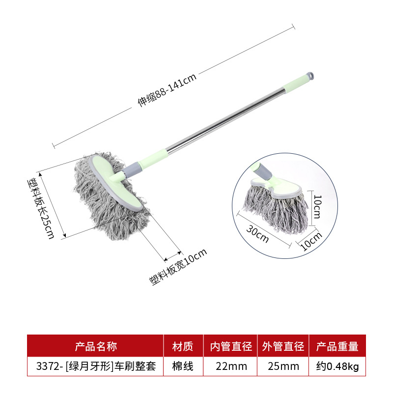 • 3372-녹색 초승달 모양-회색 면사 텔레스코픽 핸들 자동차 브러시