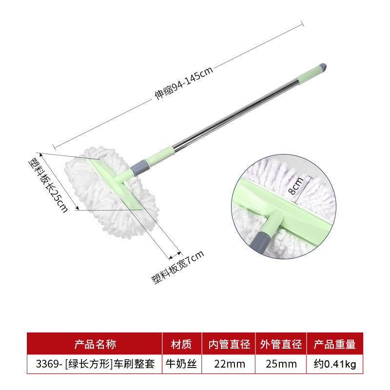 • 3369-녹색 직사각형 두꺼운 우유 실크 텔레스코픽 핸들 자동차 브러시