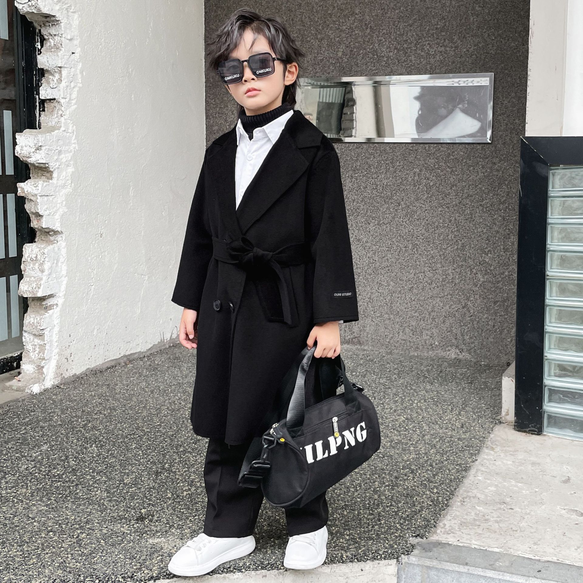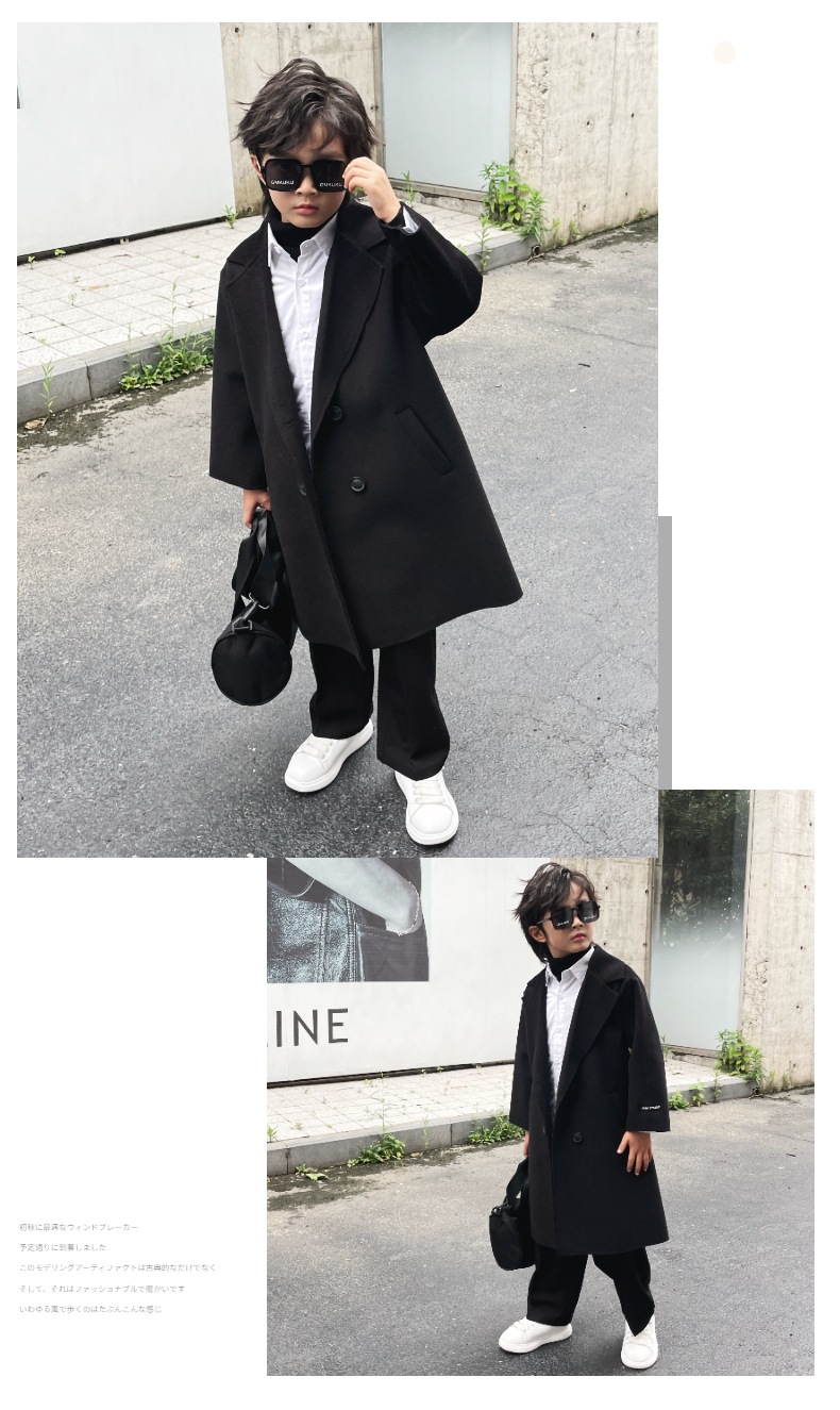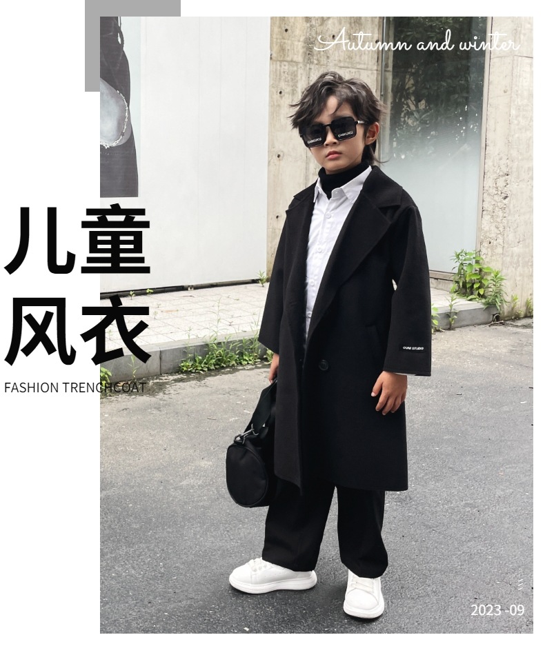 아동복 남아 트렌치 코트 어린이 롱 코트 2023 가을과 겨울 영국 스타일 트렌디 한 멋진 베이비 코트