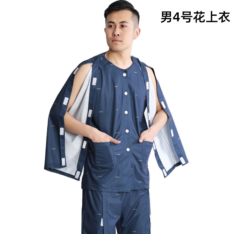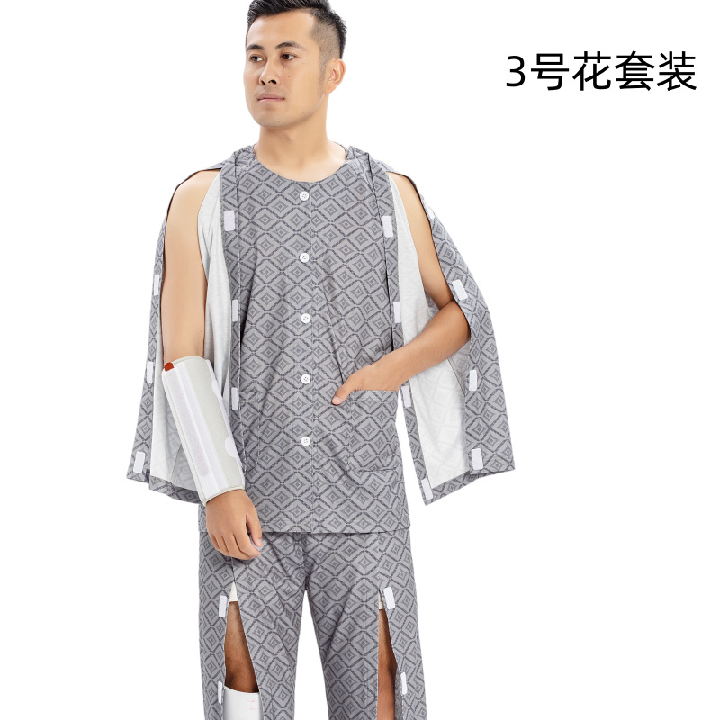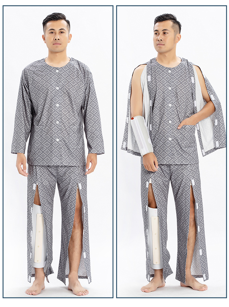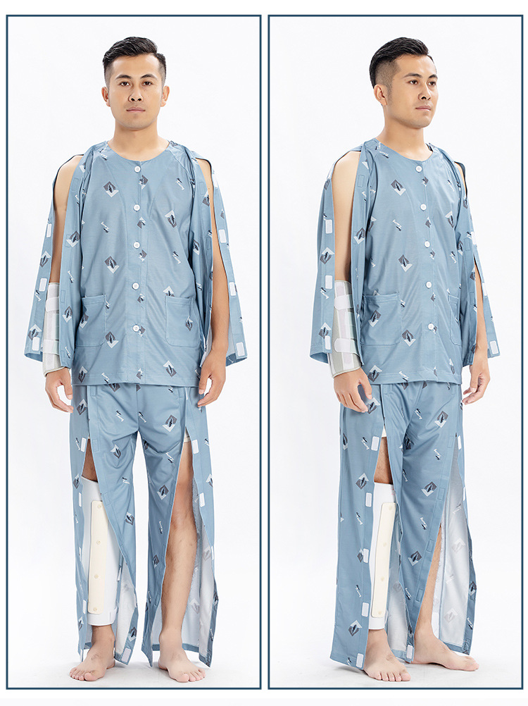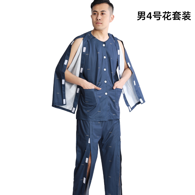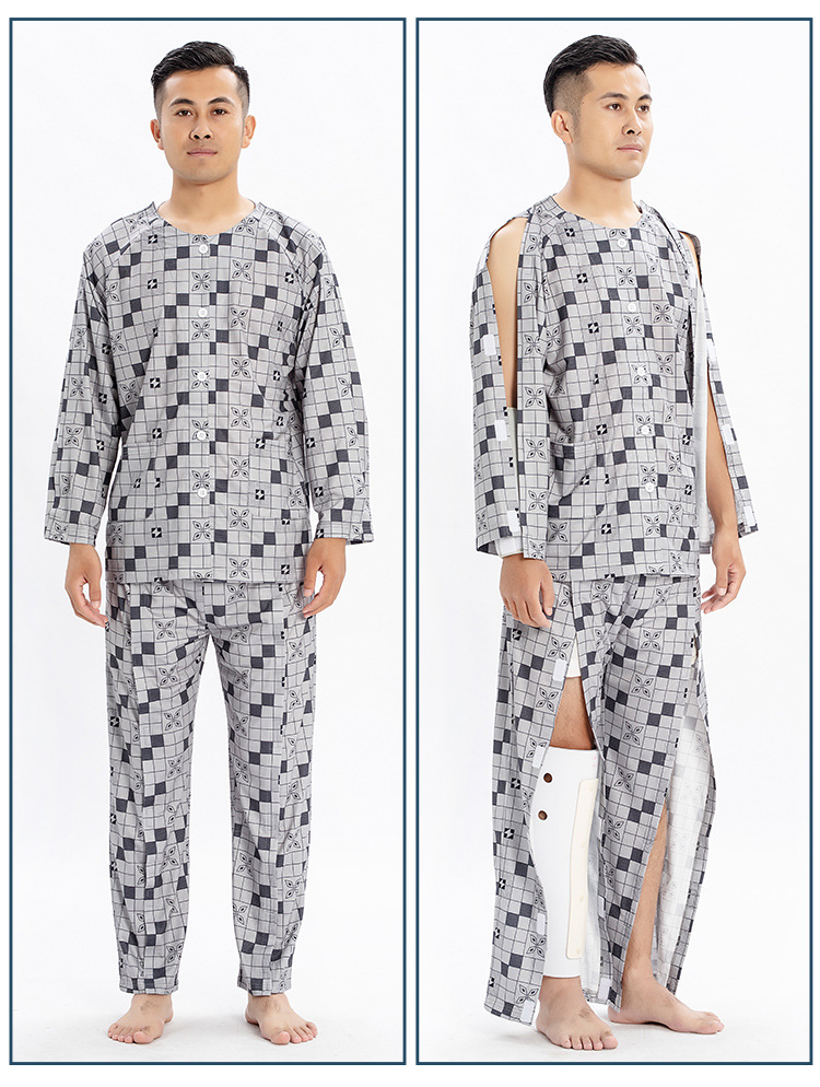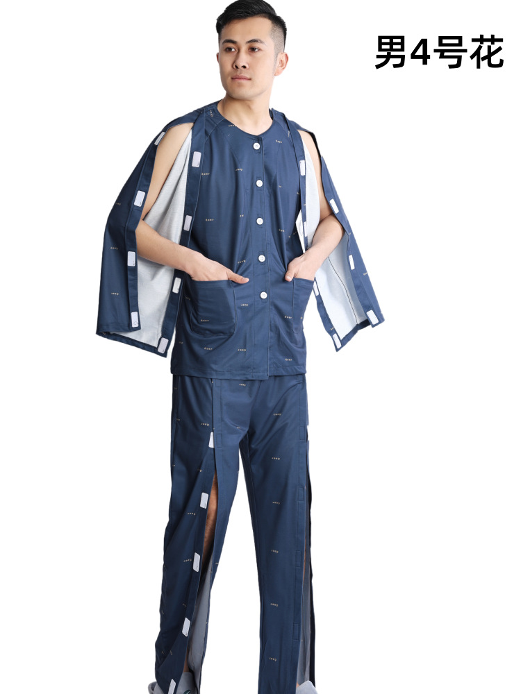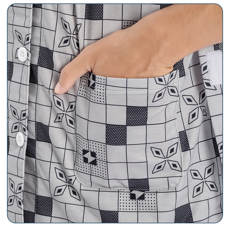 병상 골절 병원 가운 착용하기 쉽고 마비 노인 환자 관리 의류 면 인쇄 남성용 홈 가운 잠옷스토어 가기