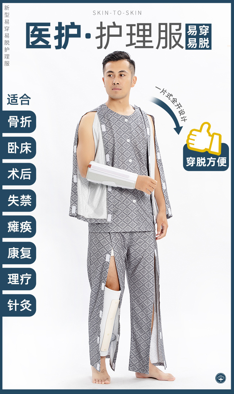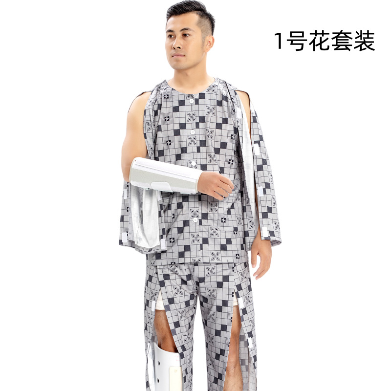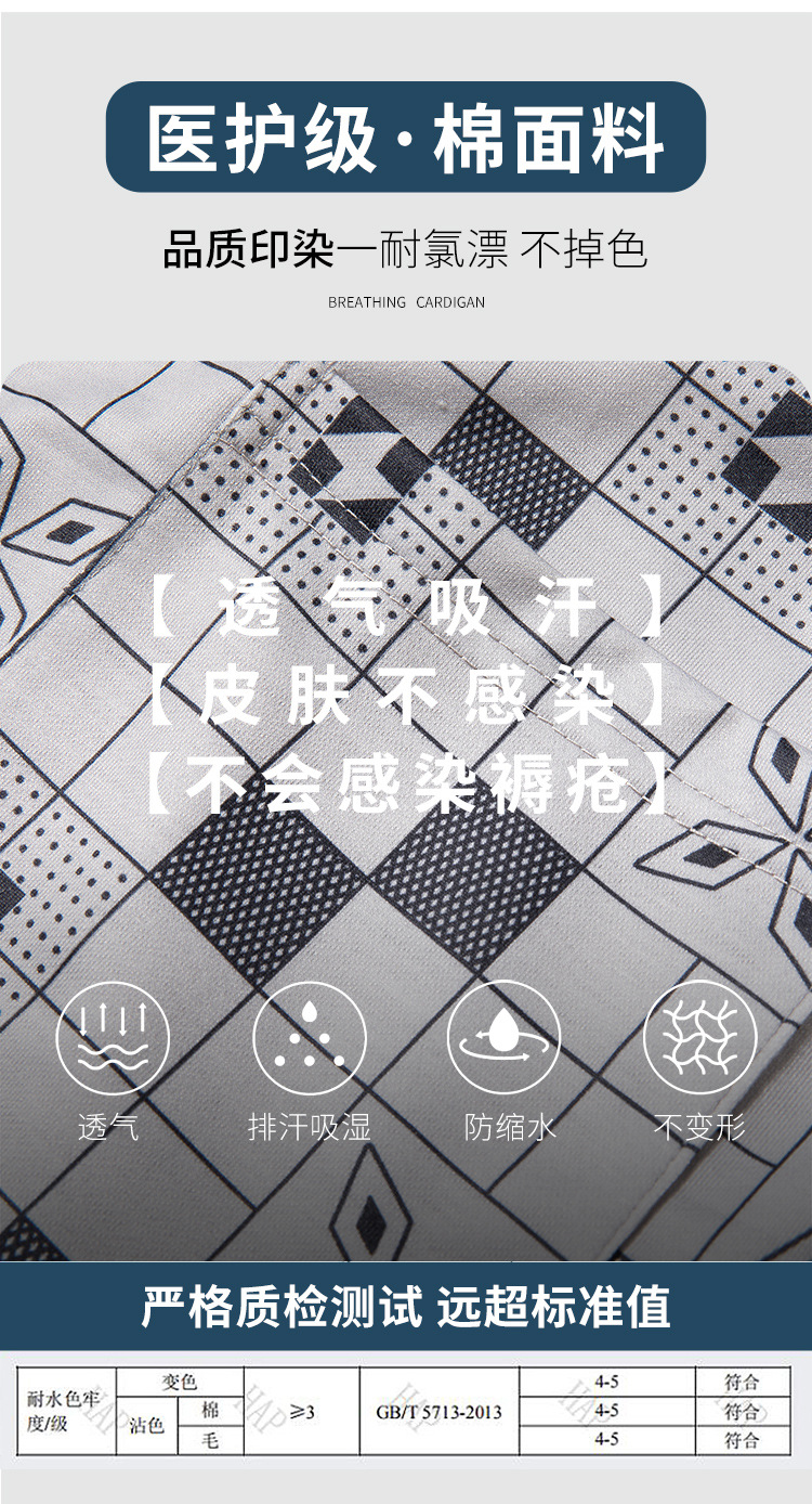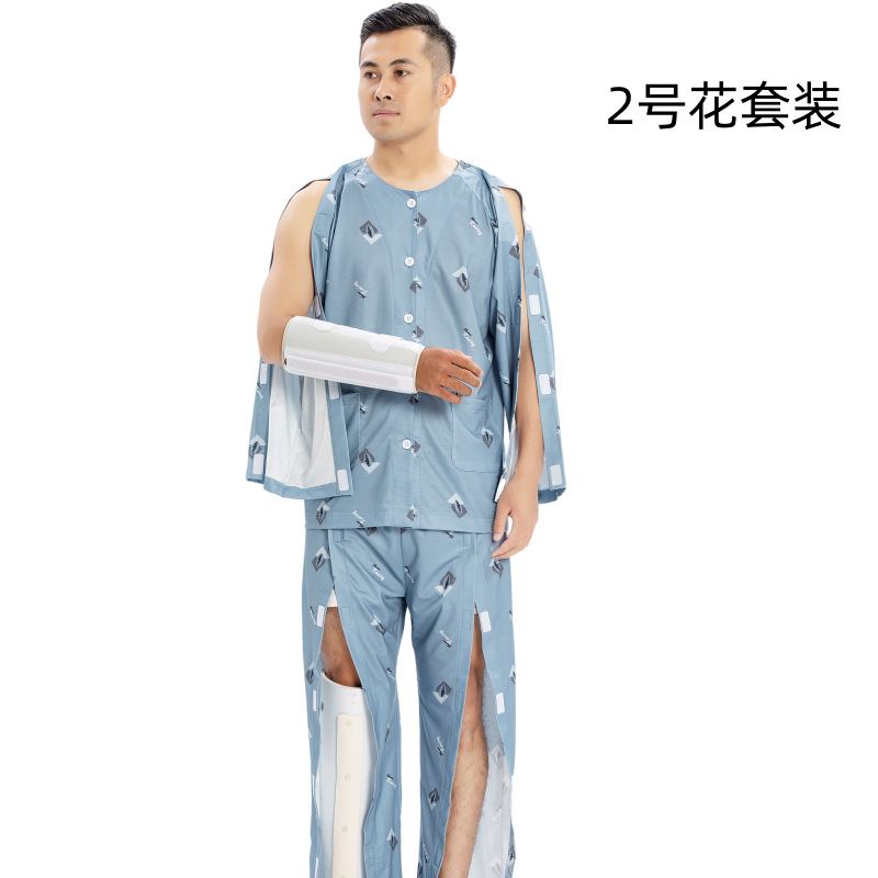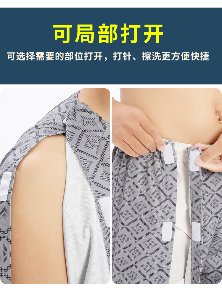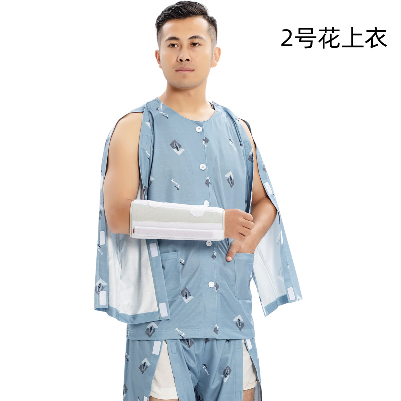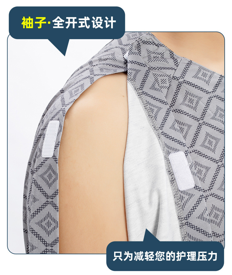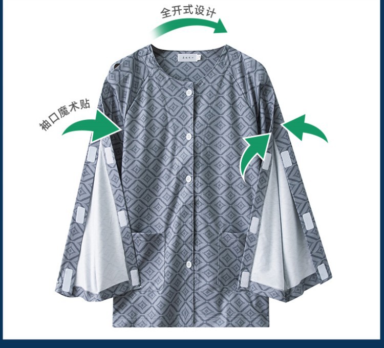 병상 골절 병원 가운 착용하기 쉽고 마비 노인 환자 관리 의류 면 인쇄 남성용 홈 가운 잠옷스토어 가기