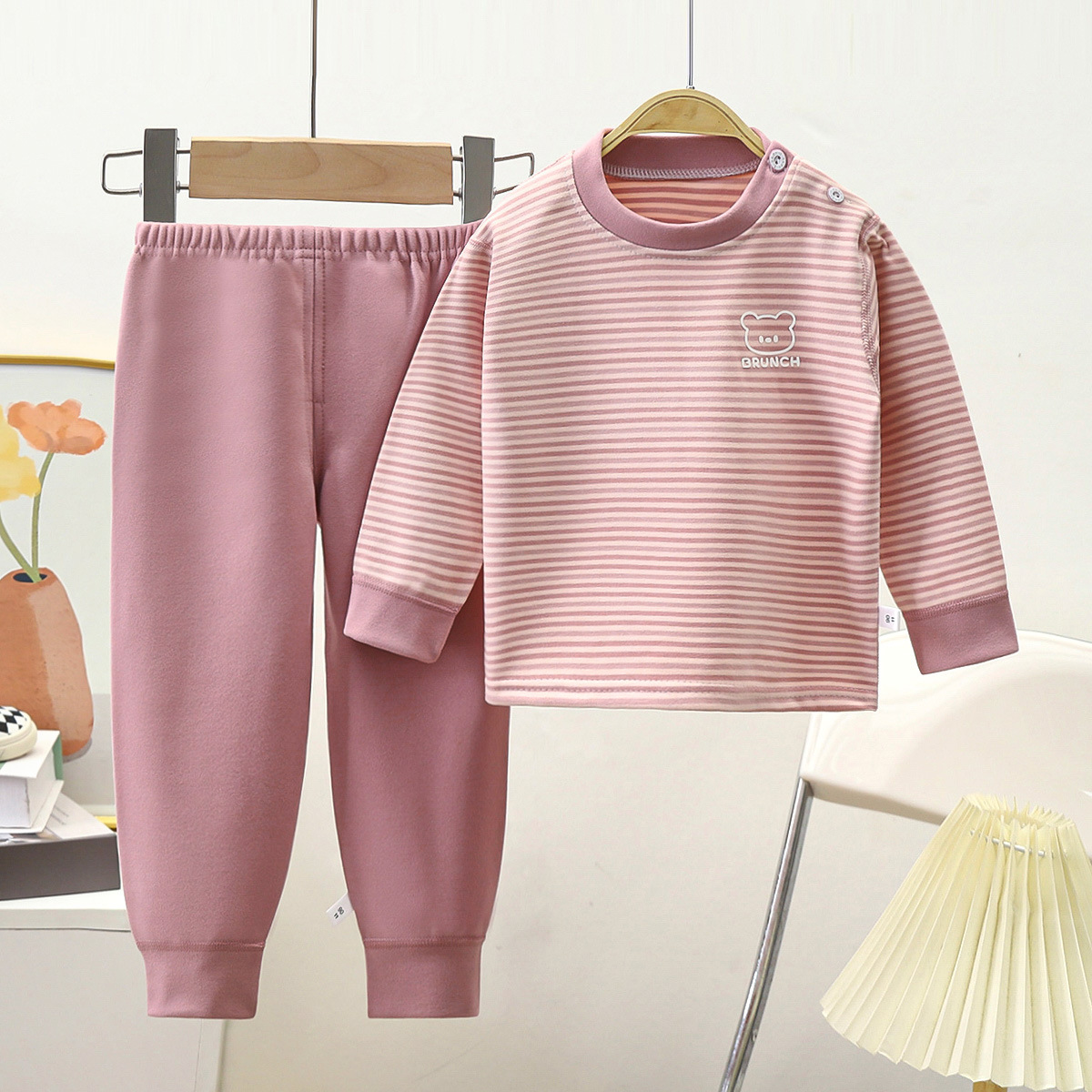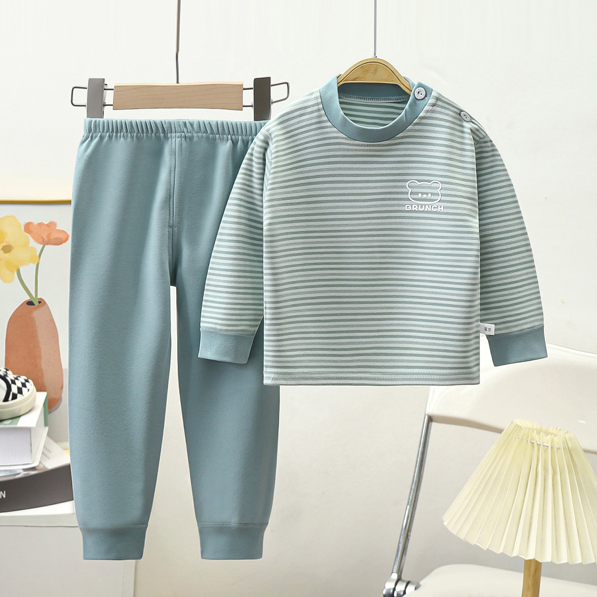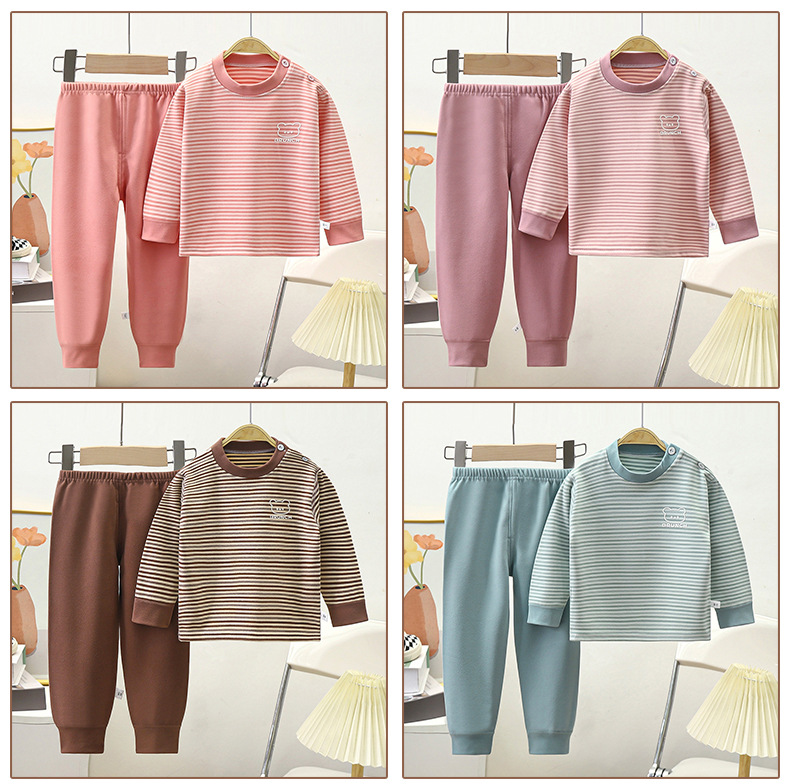 어린이 독일 벨벳 속옷 아기 가을, 겨울 열 속옷 소년 잠옷 세트 소녀 몸에 꼭 맞는 가정 의류 간단한 스타일