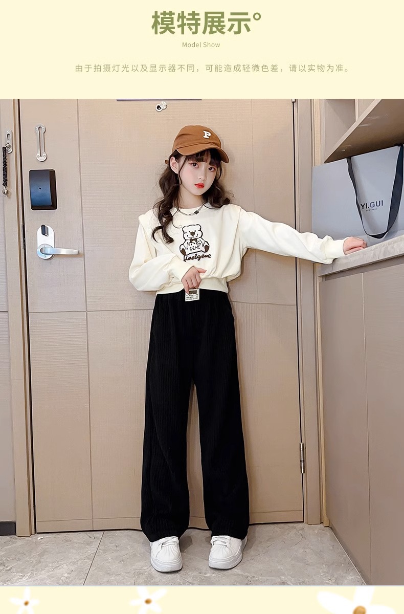 여아용 한국 스타일 세트 2024 봄 가을 신상 중대형 어린이 만화 패션 스웨트셔츠 캐주얼 바지 투피스 세트
