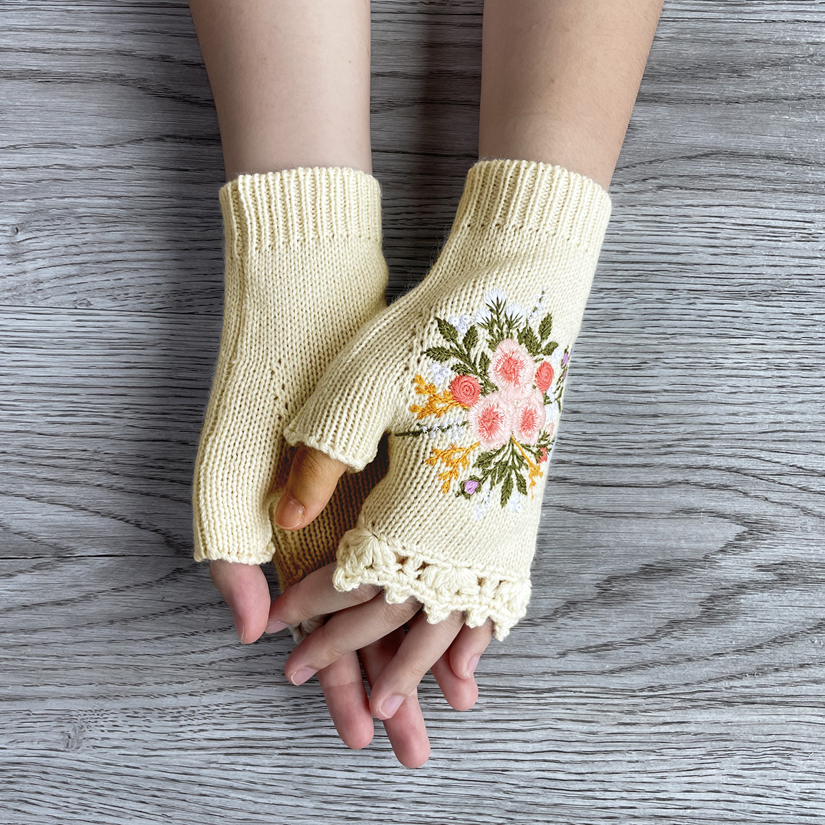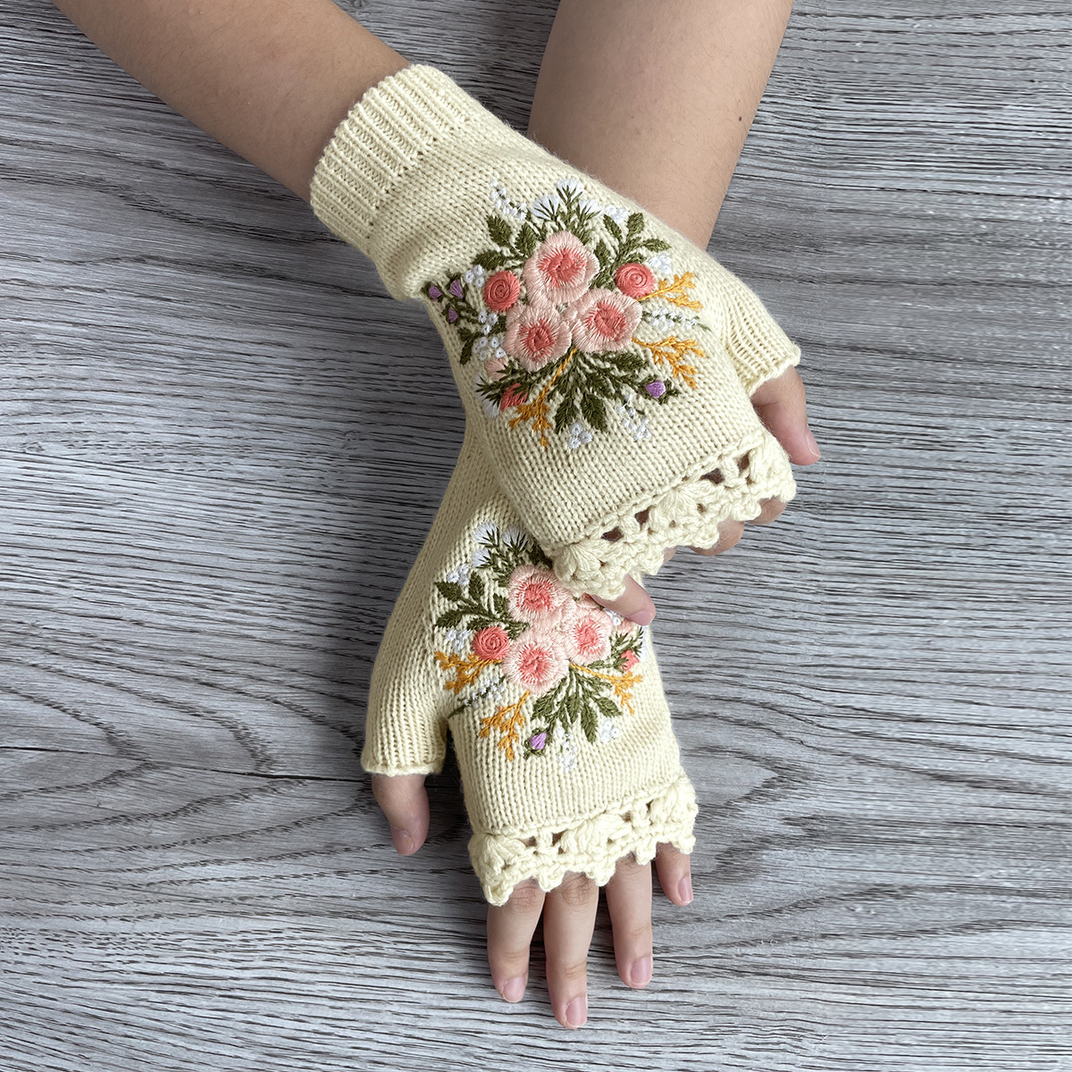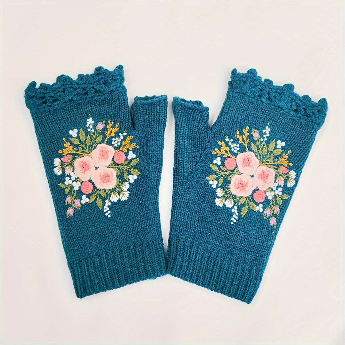 크로스 보더 아마존 독립 역 새로운 여성의 가을과 겨울 따뜻한 수제 후크 가장자리 자수 꽃 반 손가락 니트 장갑