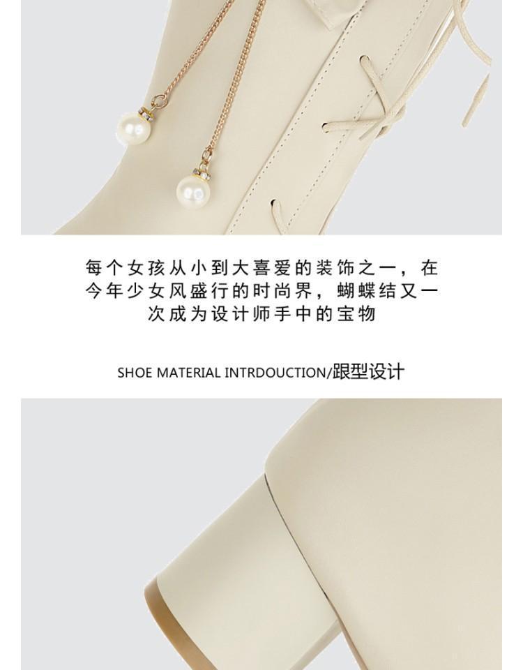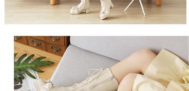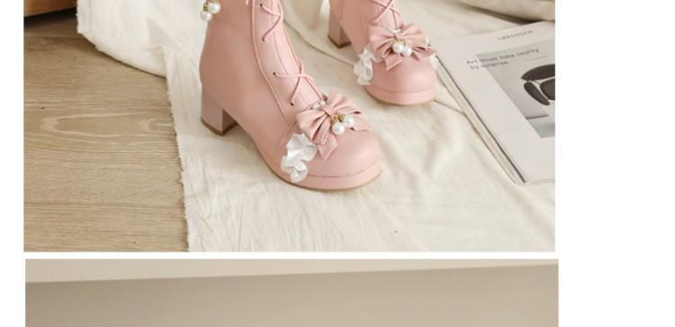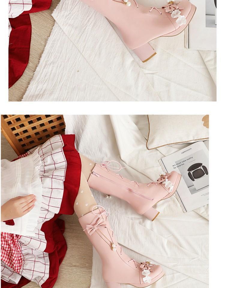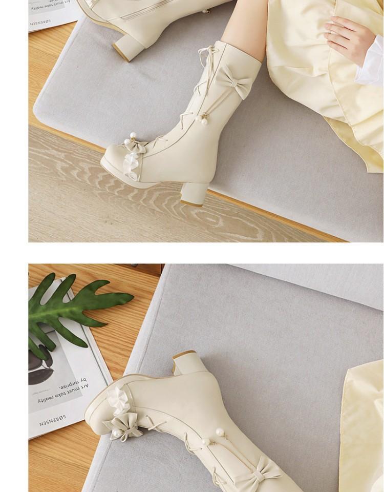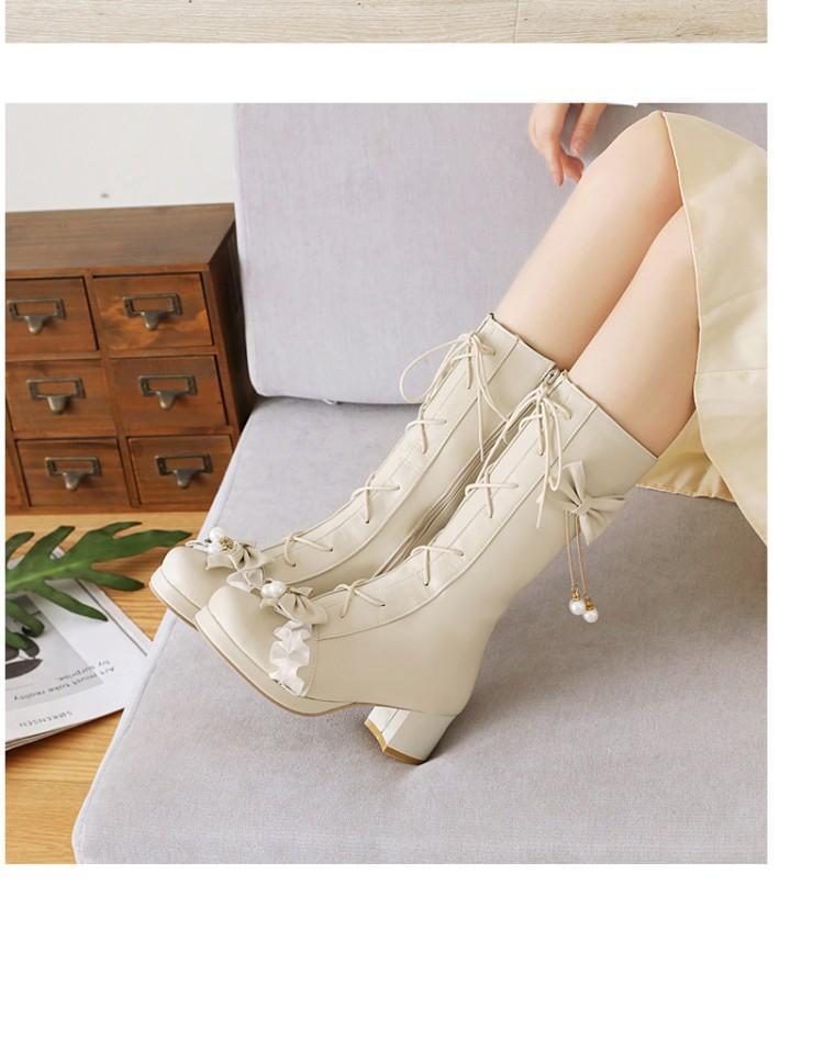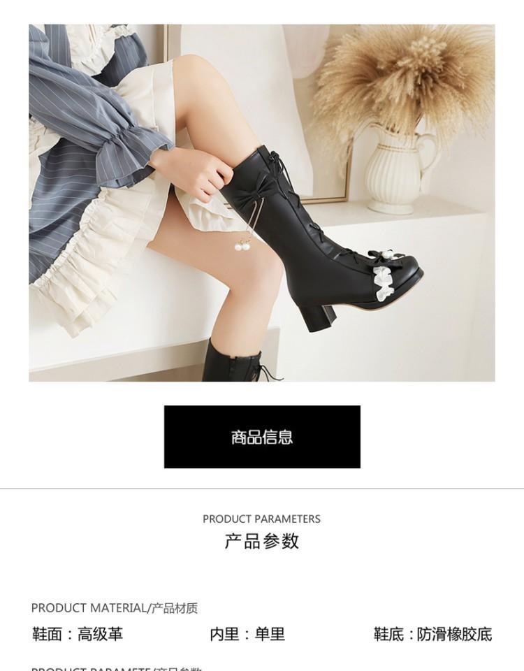 일본식 달콤한 로리타 미들 부츠 보우 티 파티 여성 신발 두꺼운 미들 힐 나이트 부츠 플러스 사이즈 모든 매치 미들 부츠스토어 가기