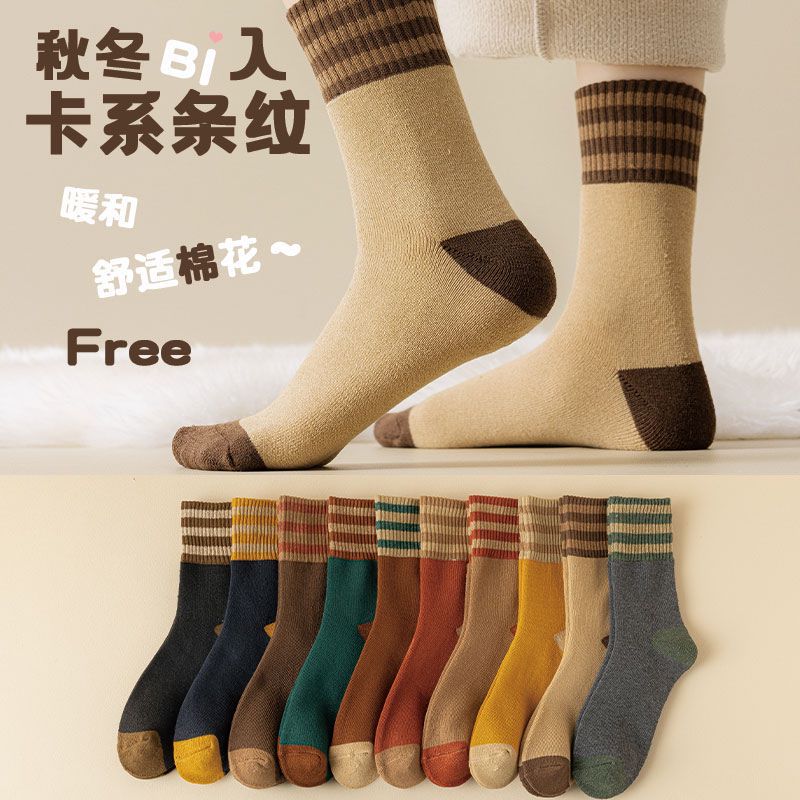 양말 여성 가을과 겨울 새로운 줄무늬 숙녀 양말 도매 두꺼운 따뜻한 테리 양말스토어 가기