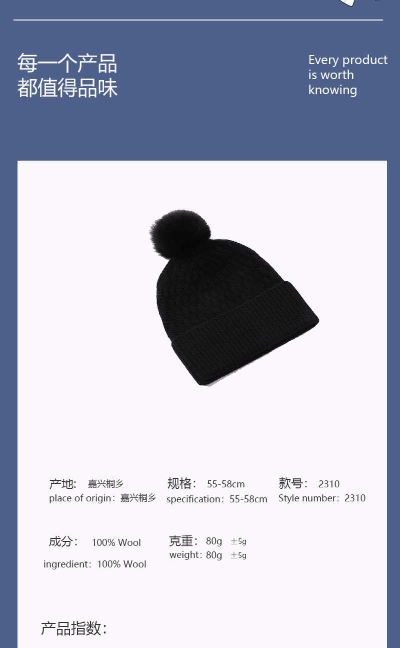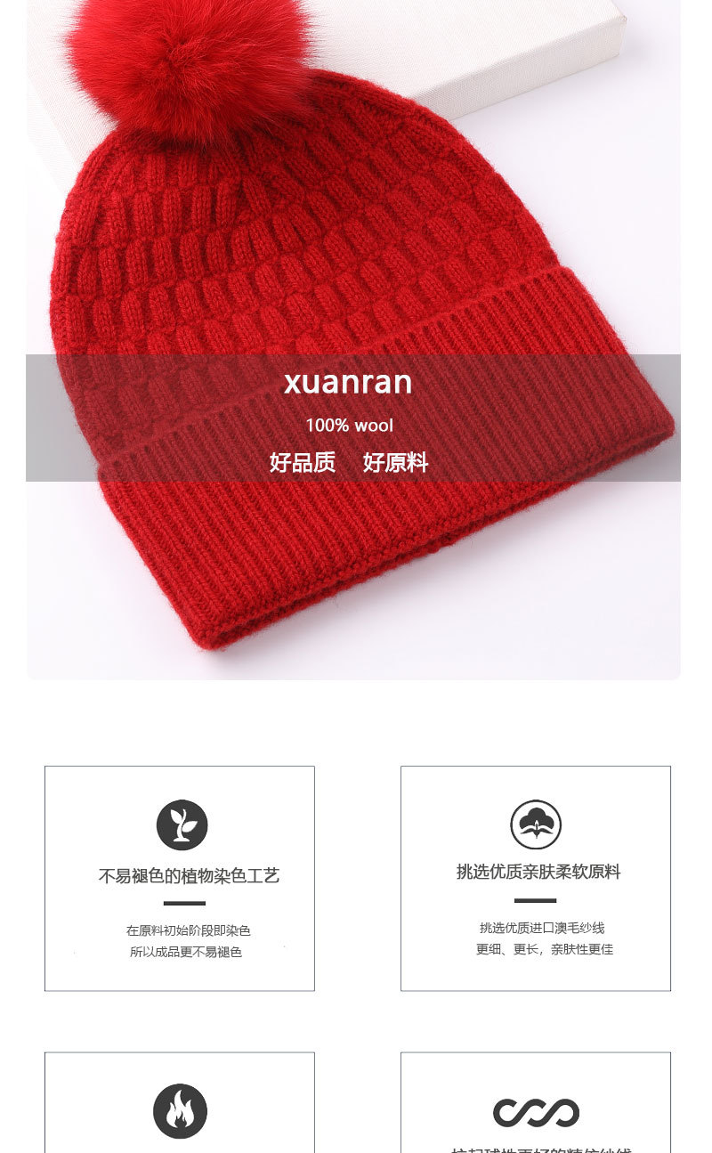 울 니트 모자 가을과 겨울 새로운 스타일 모자 여성용 울 모자 여우 모피 공 모든 매치 두꺼운 따뜻한 달 모자