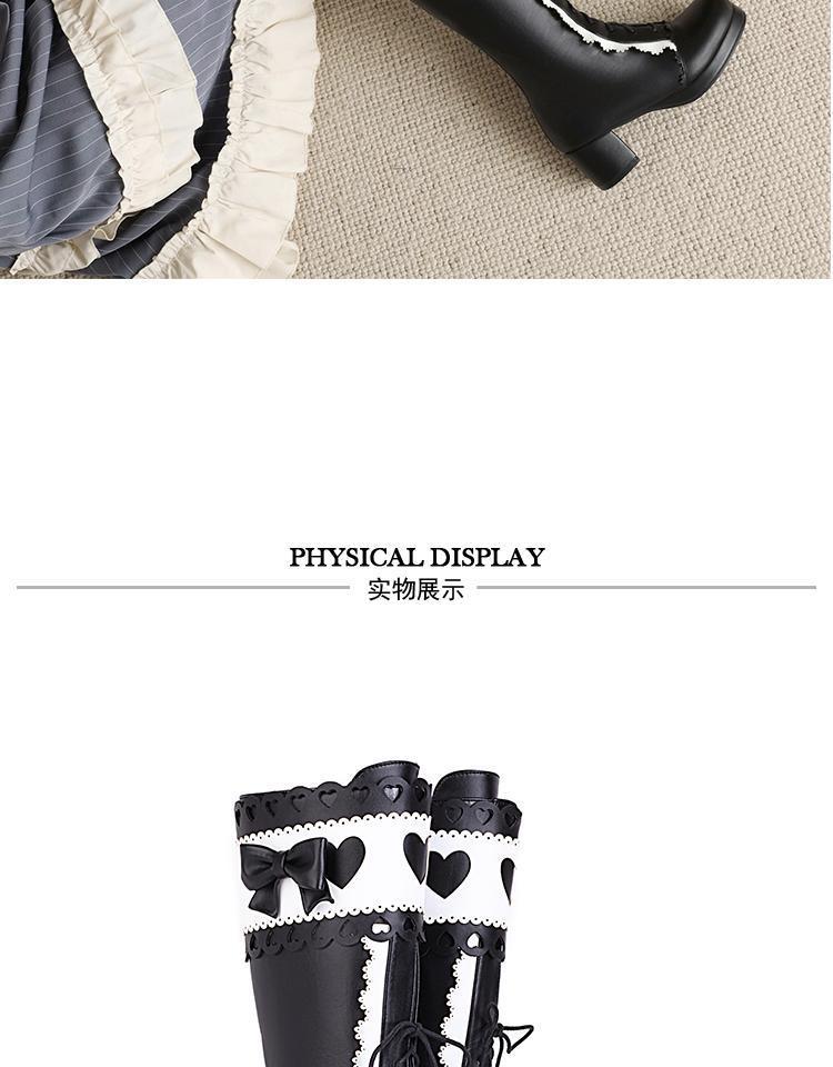 하지만 니 롱 부츠 달콤한 레이스 업 여성 부츠 라운드 토 두꺼운 미드 힐 나이트 부츠 활 로리타 하이 부츠스토어 가기