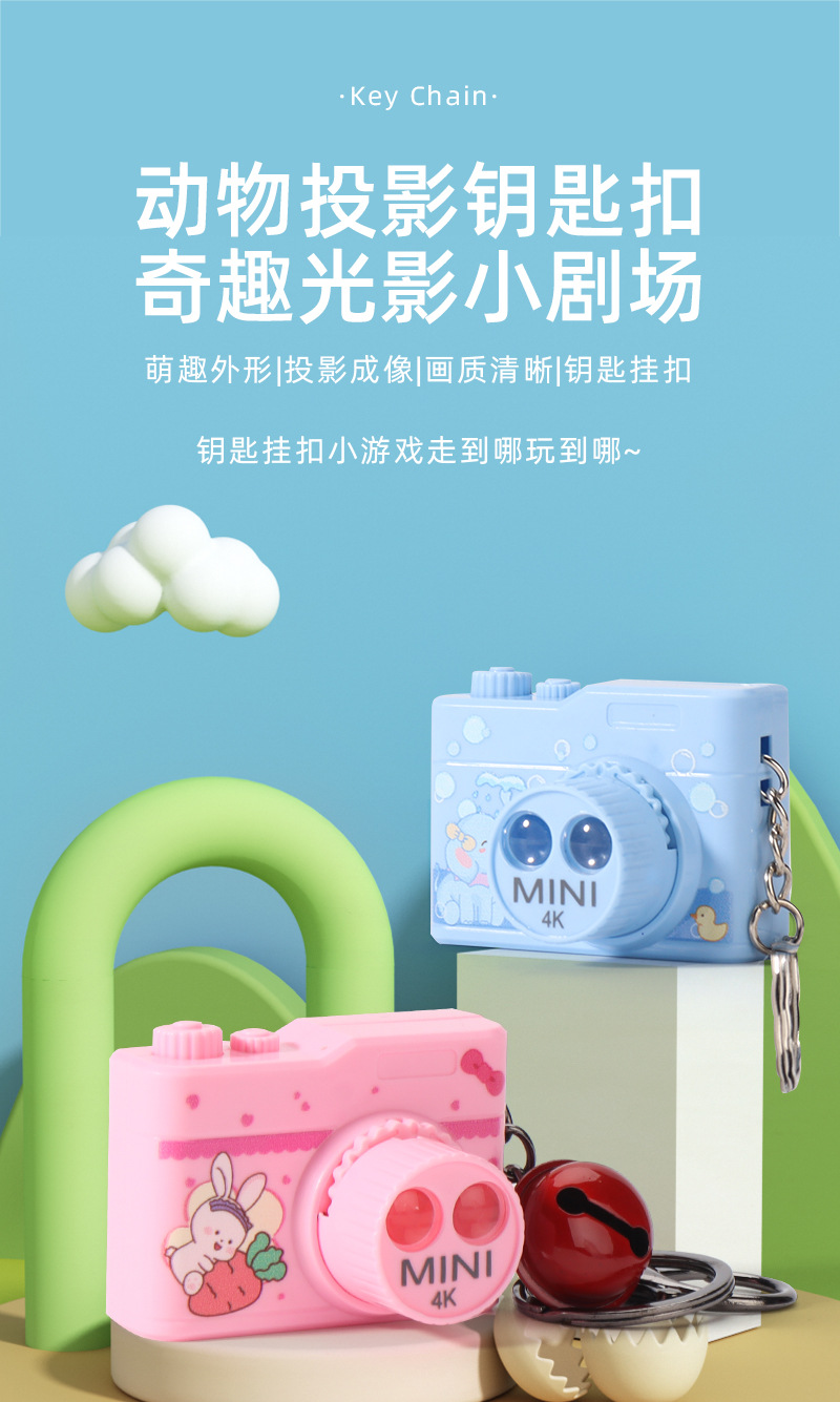 재미있는 프로젝션 시뮬레이션 카메라 키 체인 빛나는 귀여운 동물 패턴 창조적 인 소년 소녀 부티크 장난감