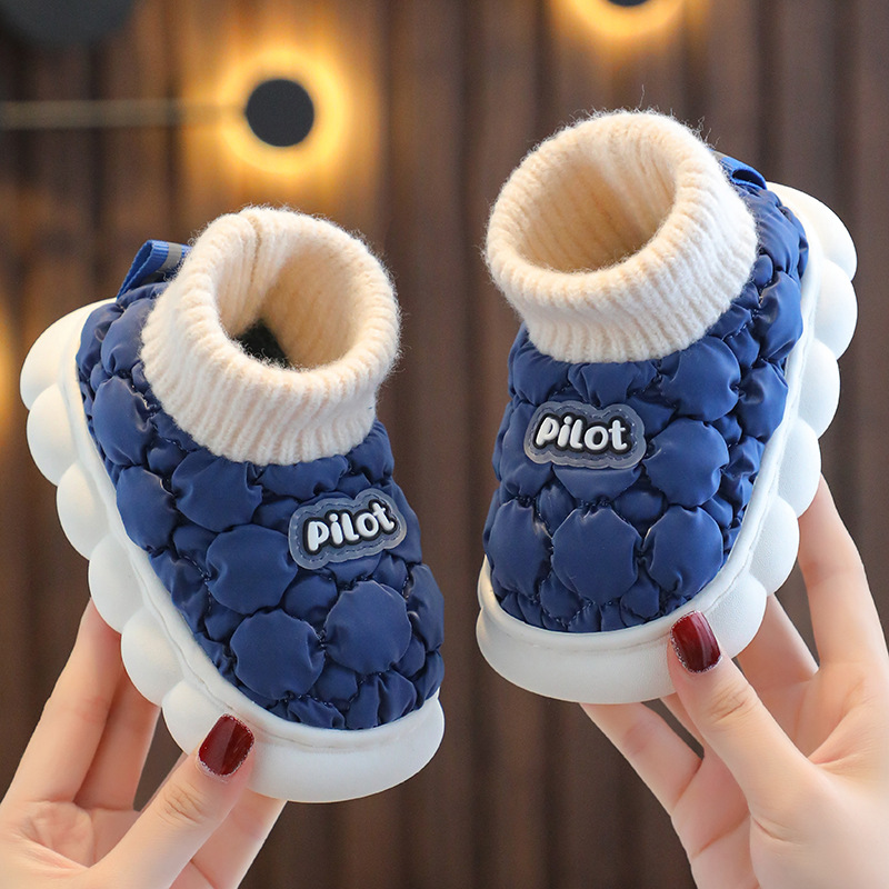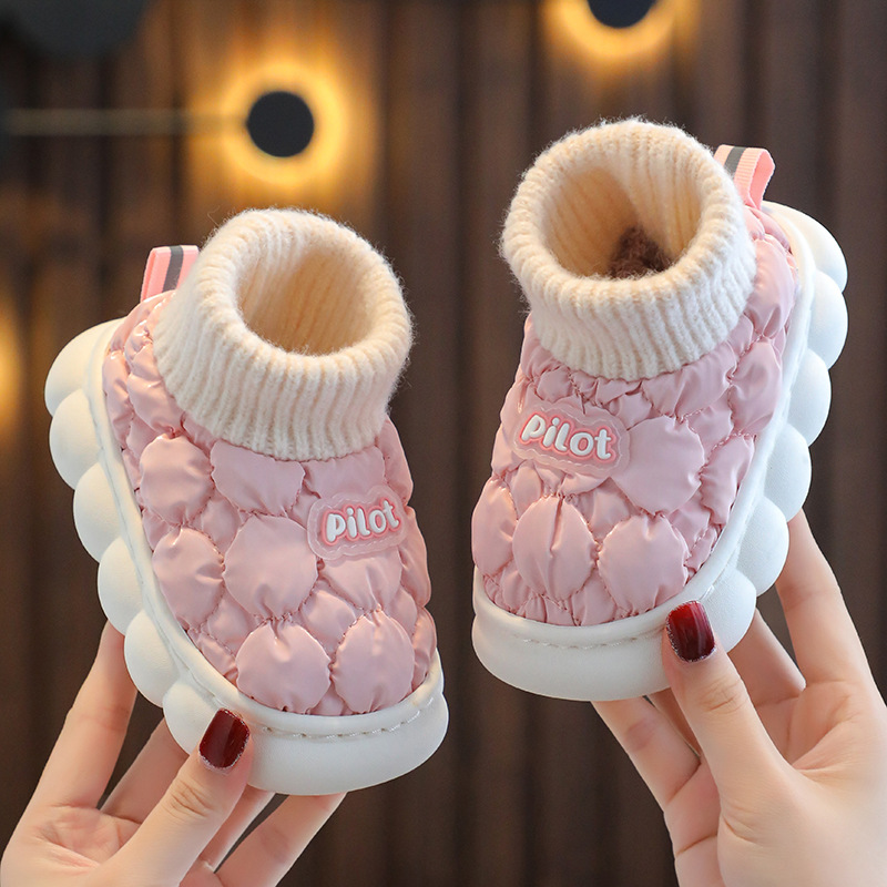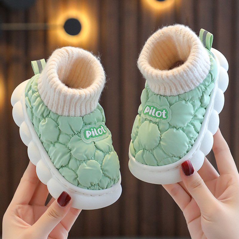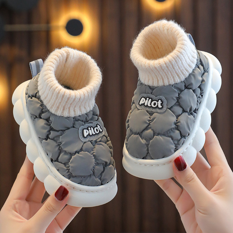 소년과 소녀를위한 겨울 어린이 면 슬리퍼 홈 방수 기모 따뜻한 미끄럼 방지 대형 중소 규모 어린이 아기 부드러운 면 슬리퍼스토어 가기